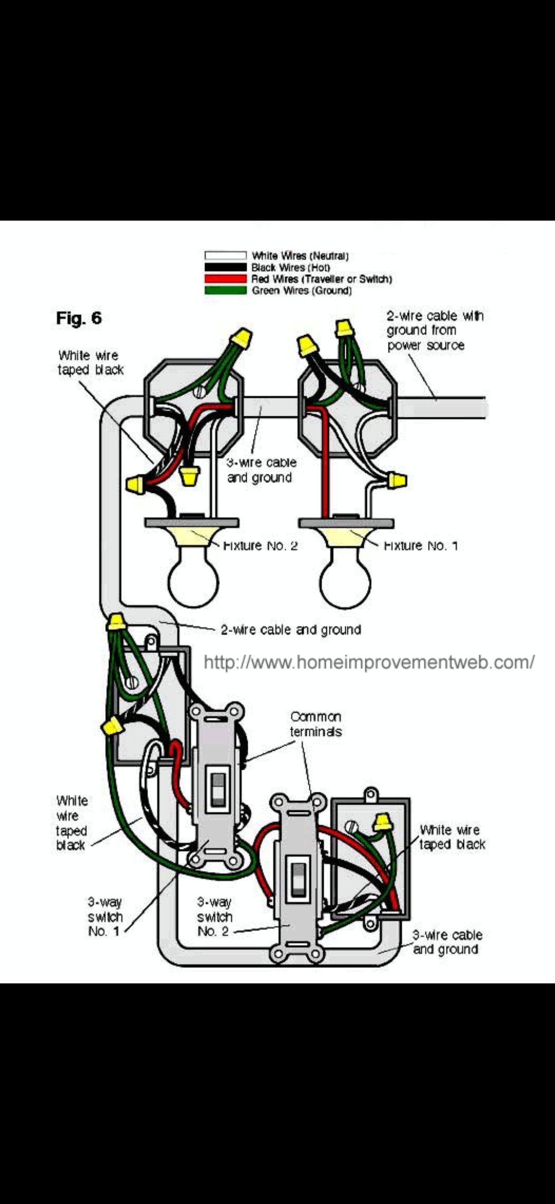 2. Identify the power source and the light fixture. The power source should be connected to the common terminal of the first switch, while the common terminal of the second switch should be connected to the light fixture.