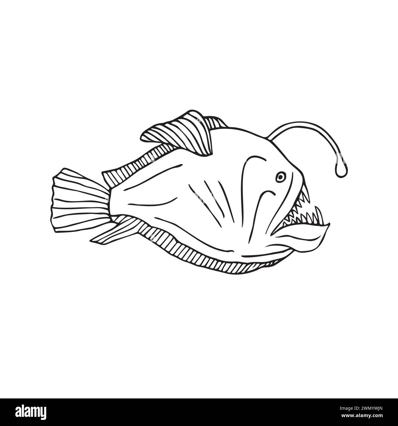 Vector Hand Drawn Doodle Sketch Angler Fish Isolated On White