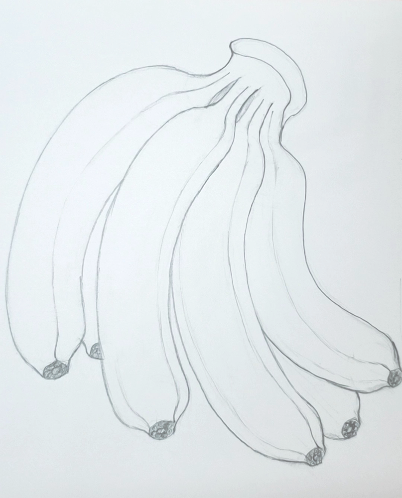 Start by sketching the basic shape of the banana using light, curved lines. Pay attention to the curvature of the banana and the way it tapers at both ends. Once you have the basic shape in place, you can start adding details such as the stem and any imperfections on the skin. Don’t forget to shade the banana to give it a more three-dimensional look.