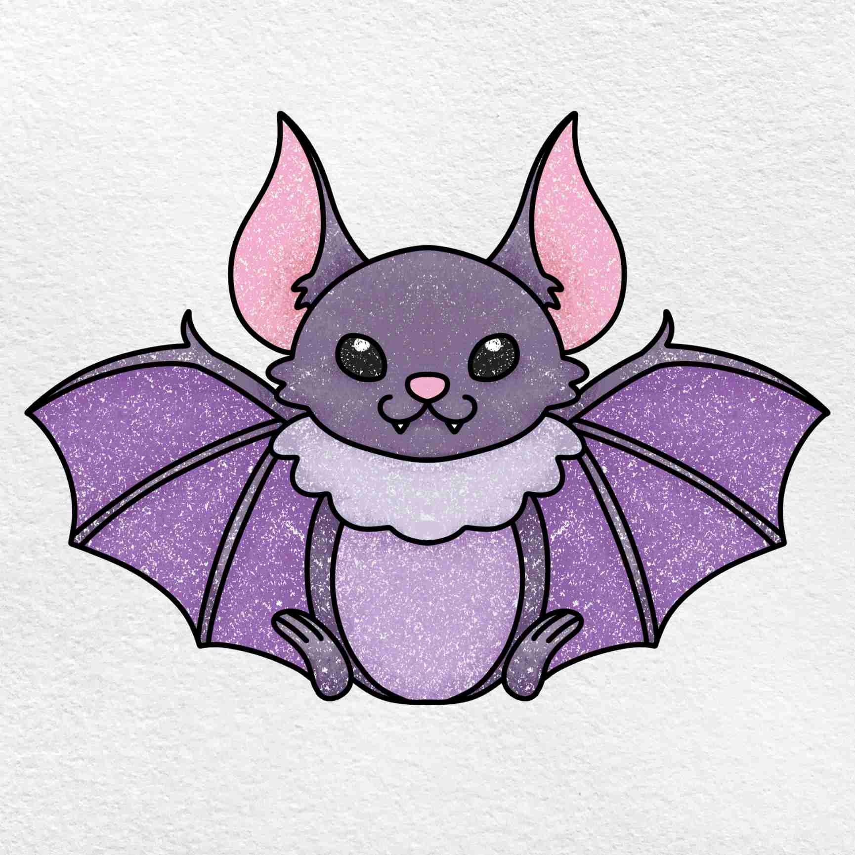 Cute Bat Drawing Easy Cartoon Instructions Drawings Of