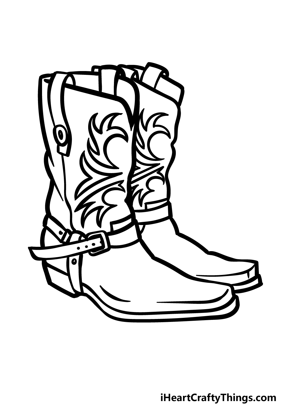 Easy How To Draw Cowboy Boots Tutorial And Coloring Page