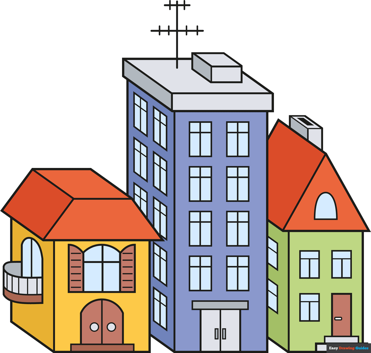 Easy How To Draw Buildings Tutorial Video And Coloring Page
