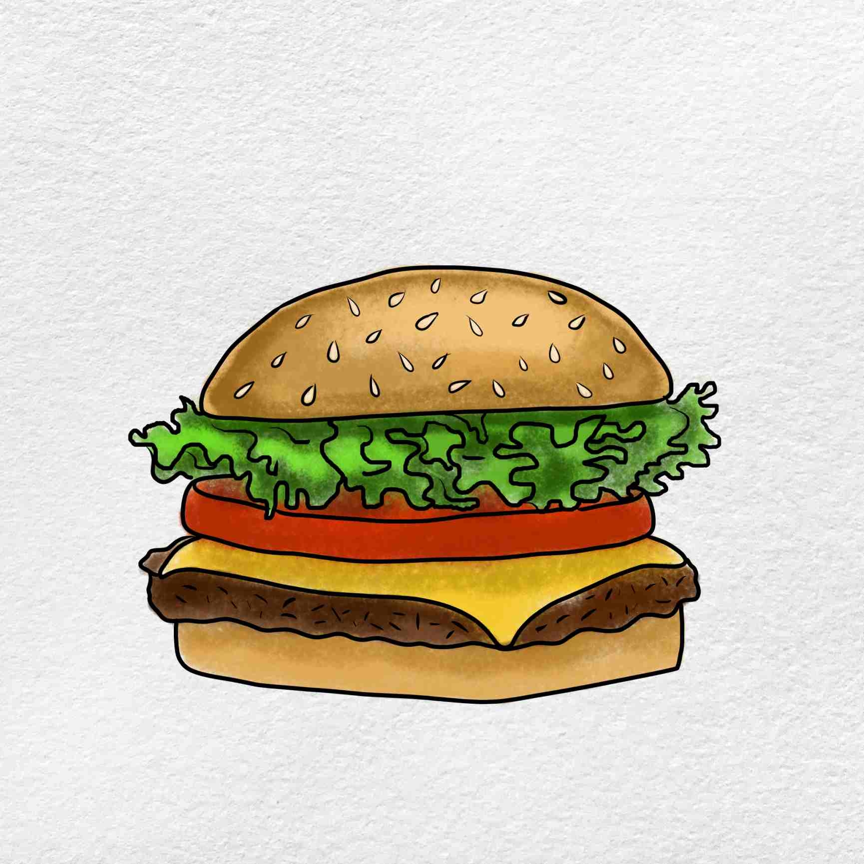 Once you’ve completed your burger drawing, step back and admire your handiwork. You’ve successfully captured the essence of a delicious burger on paper. Whether you’re a seasoned artist or a beginner, drawing a burger is a fun and rewarding challenge that allows you to showcase your creativity and attention to detail.