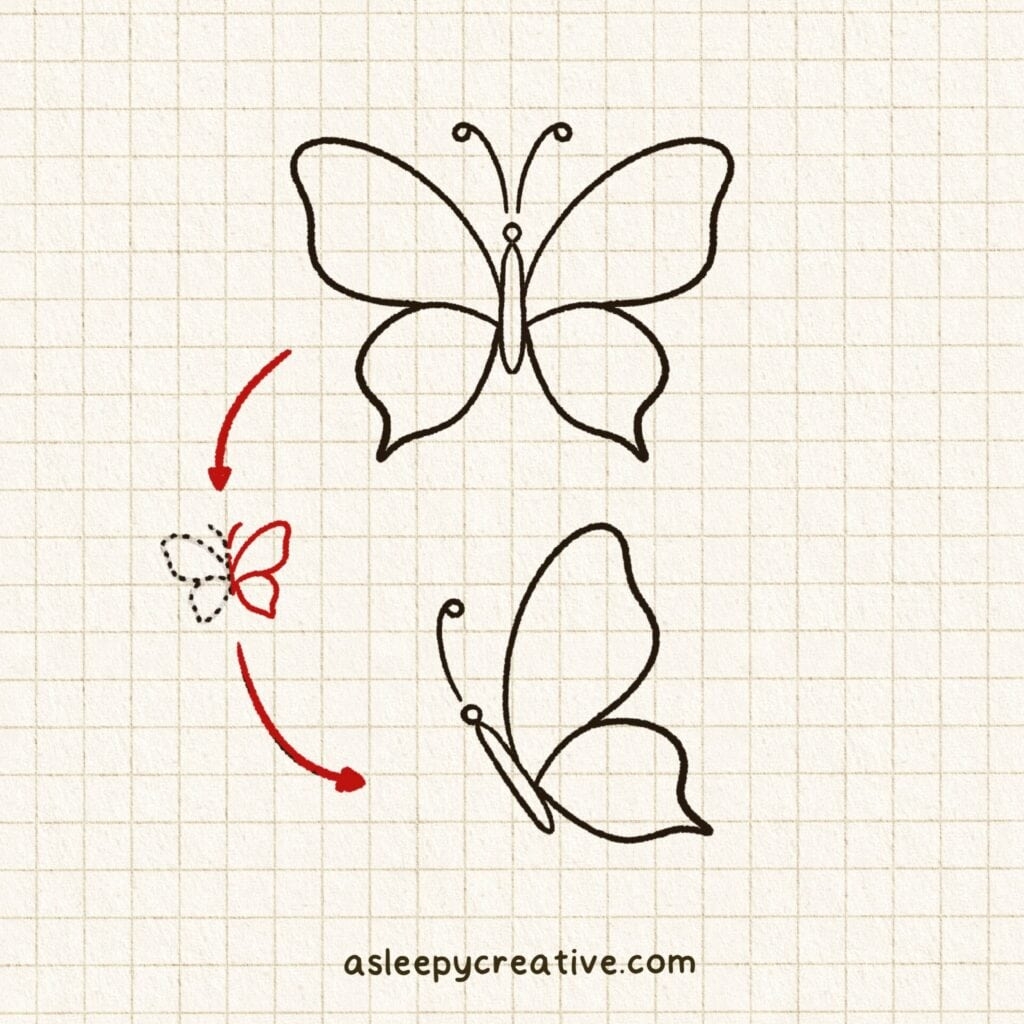 To start drawing a butterfly, begin by sketching the outline of the butterfly’s body. Use a light pencil to draw an oval shape for the body, and then add two smaller ovals on top for the head and thorax. Next, draw two long, curved lines extending from the body to create the wings.