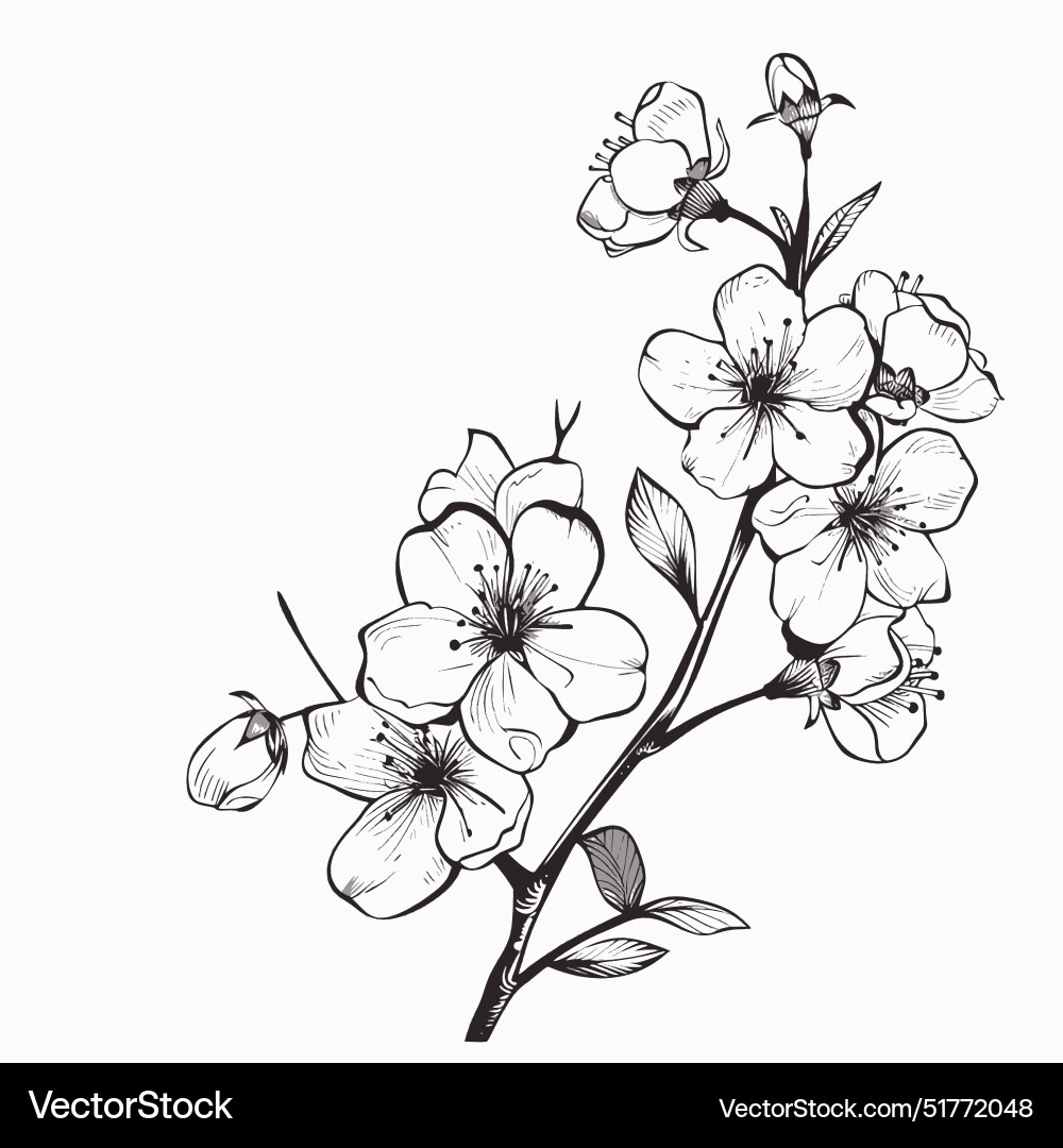 Cherry Blossom Png Svg Eps Line Drawing Royalty Free Vector