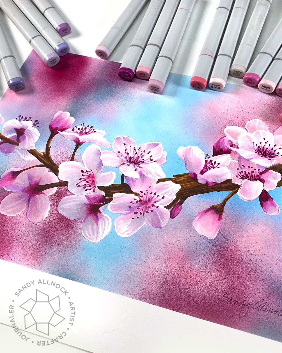 Copic Cherry Blossom Branch part 2 Sandy Allnock
