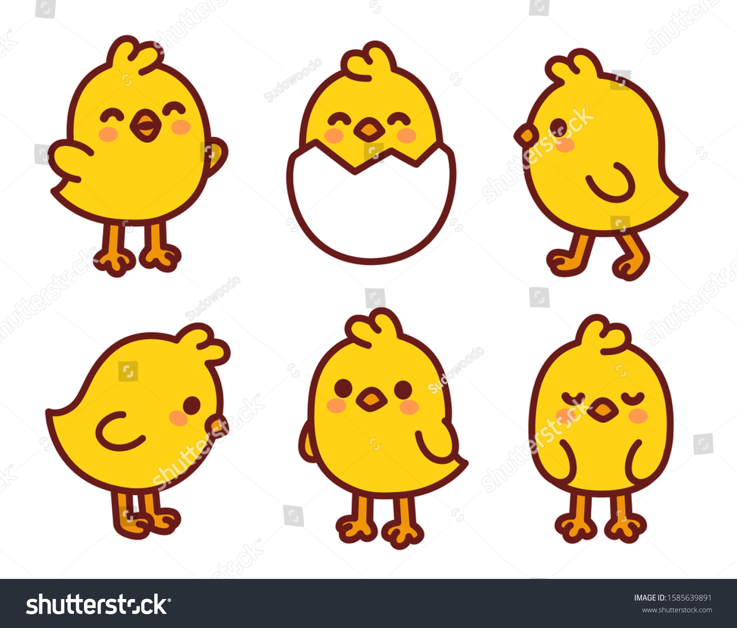 Cute Cartoon Baby Chicken Set Kawaii Stock Vector Royalty Free 1585639891 Shutterstock