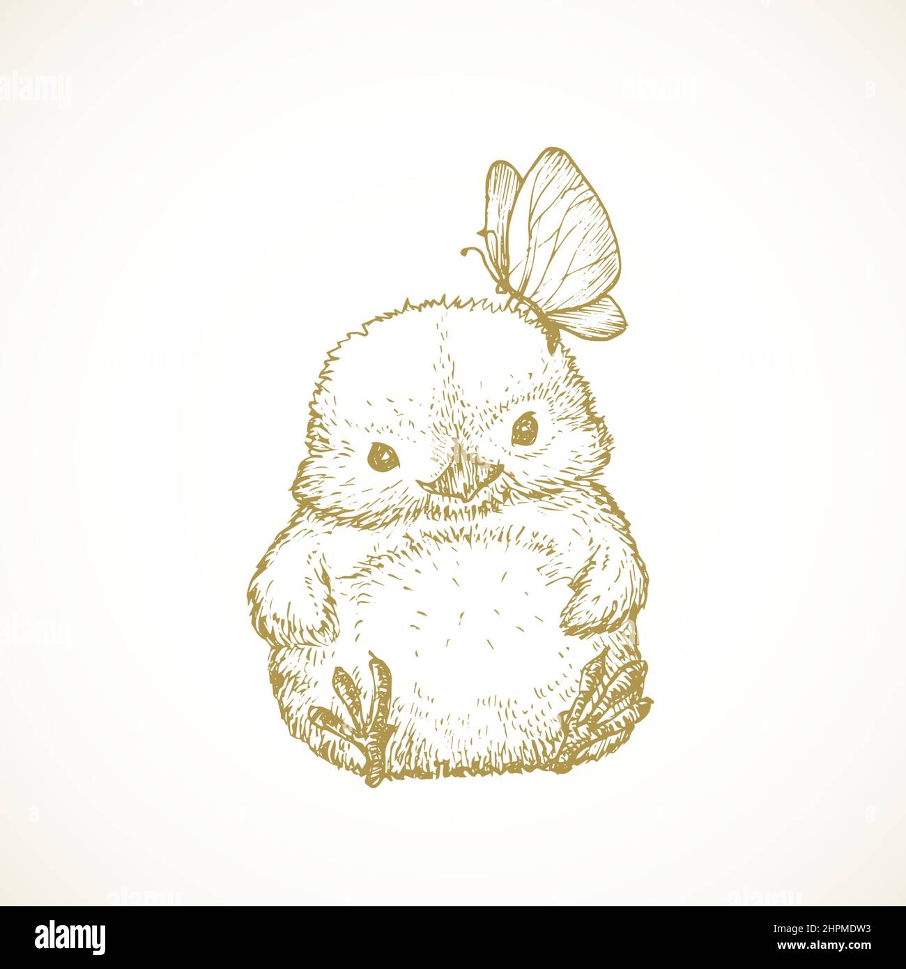 Hand Drawn Cute Easter Chick Vector Illustration Little Chicken With Butterfly Abstract Sketch Spring Holiday Engraving Style Drawing Isolated Stock Vector Image U0026 Art Alamy