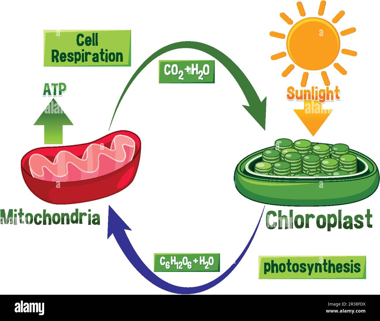 Furthermore, the diagram can also show how energy flows through living organisms. In cellular respiration, glucose is broken down to produce ATP, which is then used in various cellular activities. In photosynthesis, sunlight is used to create glucose, which serves as the energy source for plants. This constant exchange of energy between plants and animals is essential for the survival of all living organisms on Earth.