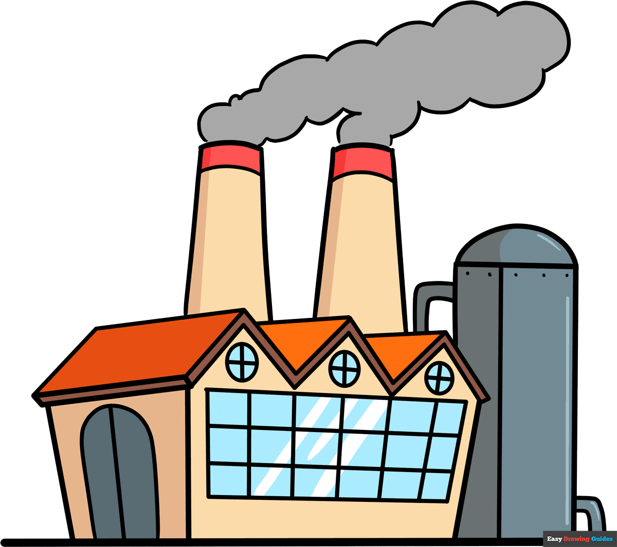 Finally, add any finishing touches like surrounding landscaping, workers going about their tasks, or signs and logos that identify the factory. These details will help to complete the scene and make your drawing more engaging and realistic.