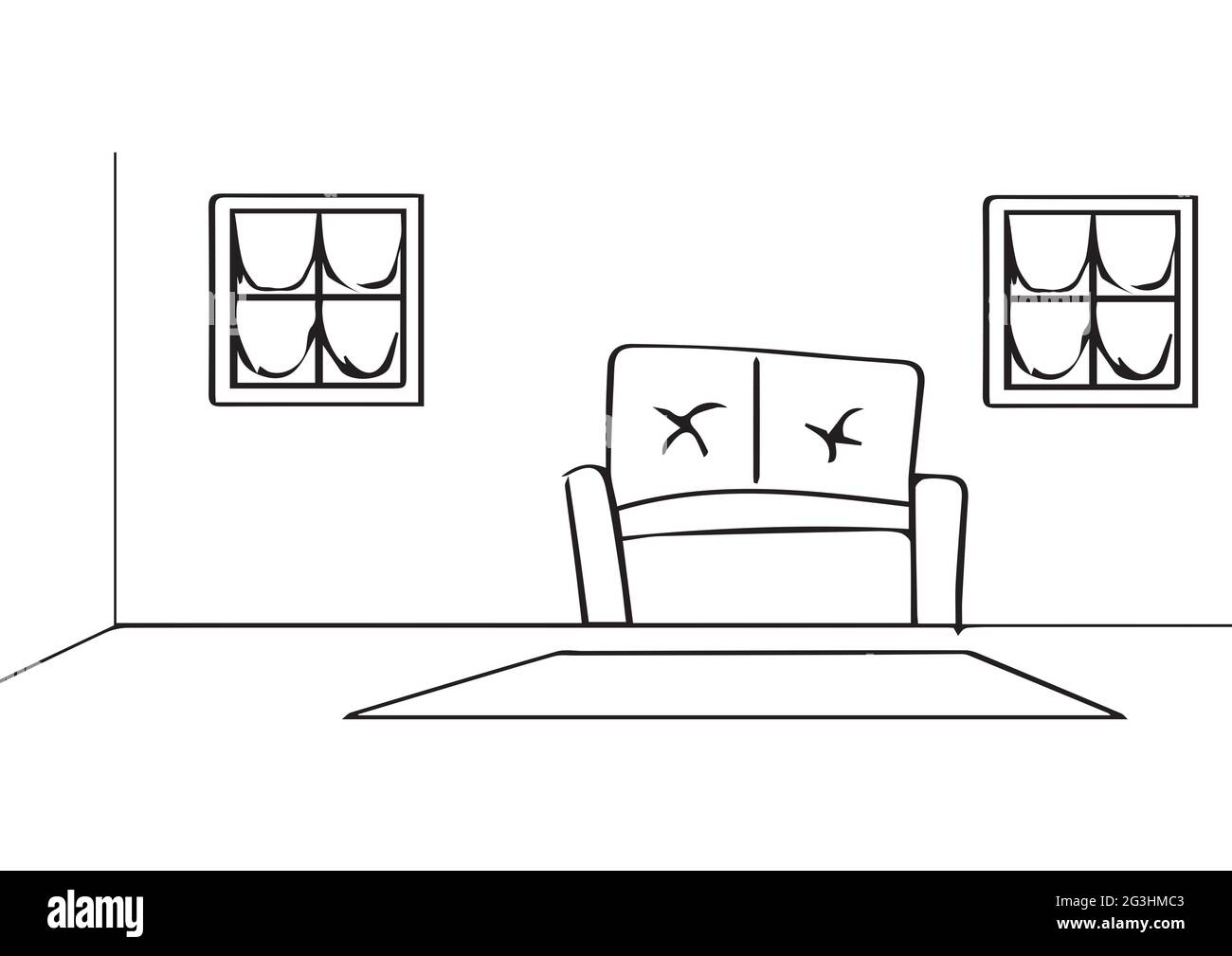 Sketch Living Room Doodle House Interior With Couch Lamp And Picture Frames Freehand Drawing Home Black And White Vector Interior Illustration Of Sketch Room With Furniture Interior Stock Vector Image U0026 Art