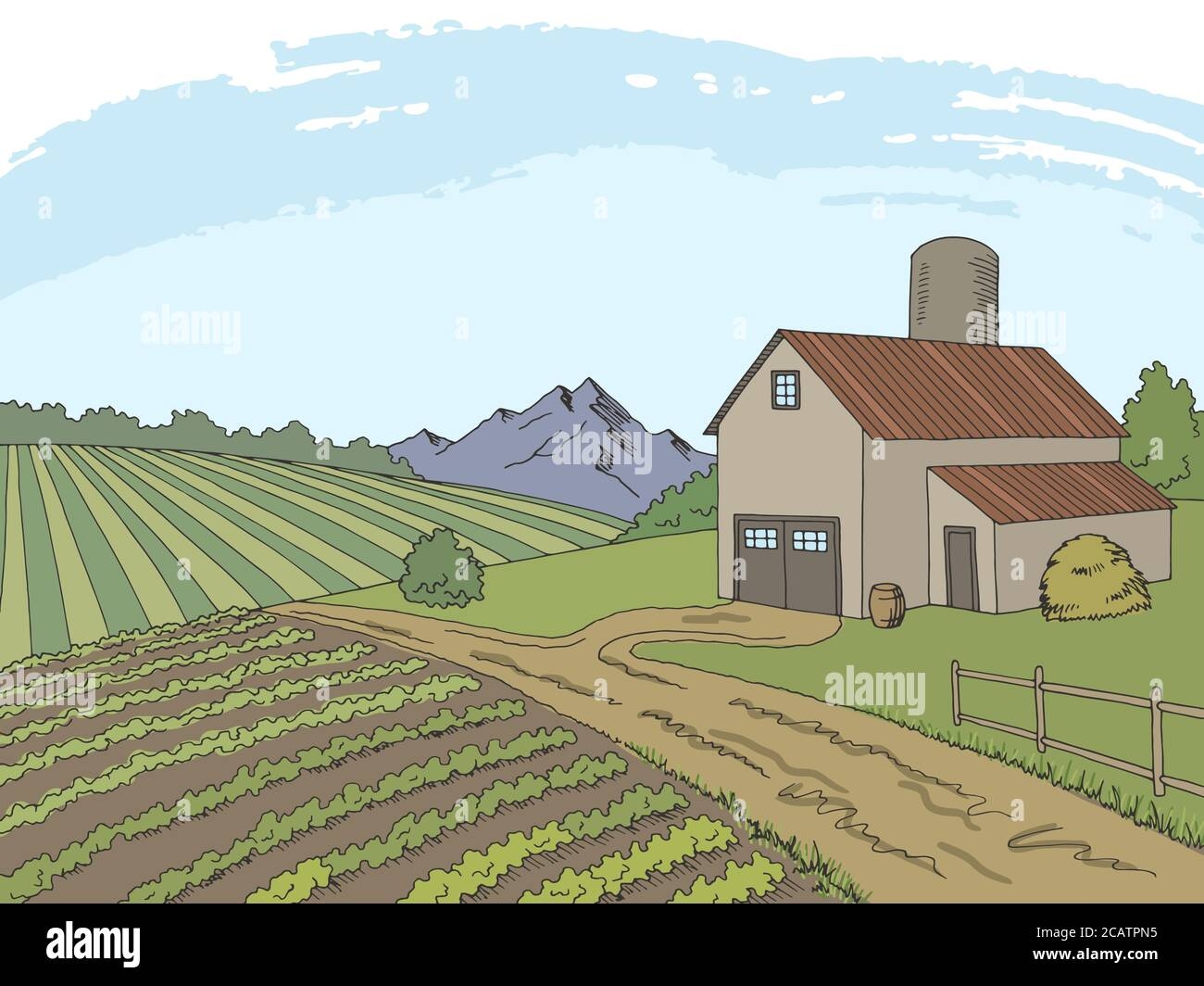 Farm Field Graphic Color Sketch Landscape Illustration Vector Stock Vector Image U0026 Art Alamy