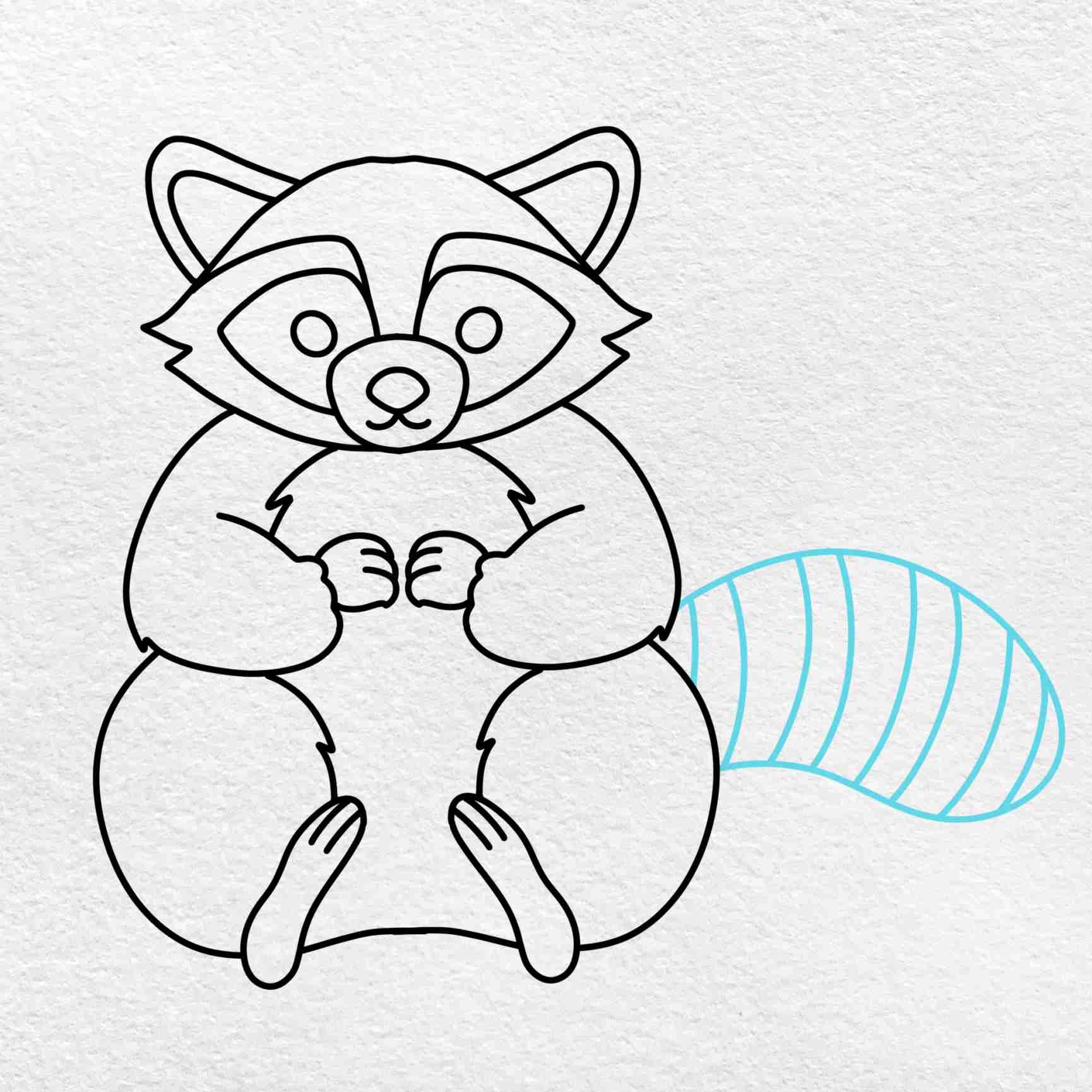 Next, work on adding in the distinctive markings of the raccoon, such as the mask around its eyes and the ringed tail. Pay attention to the patterns and textures of the fur to give your drawing a more realistic look. Use shading and hatching techniques to add depth and dimension to your drawing.