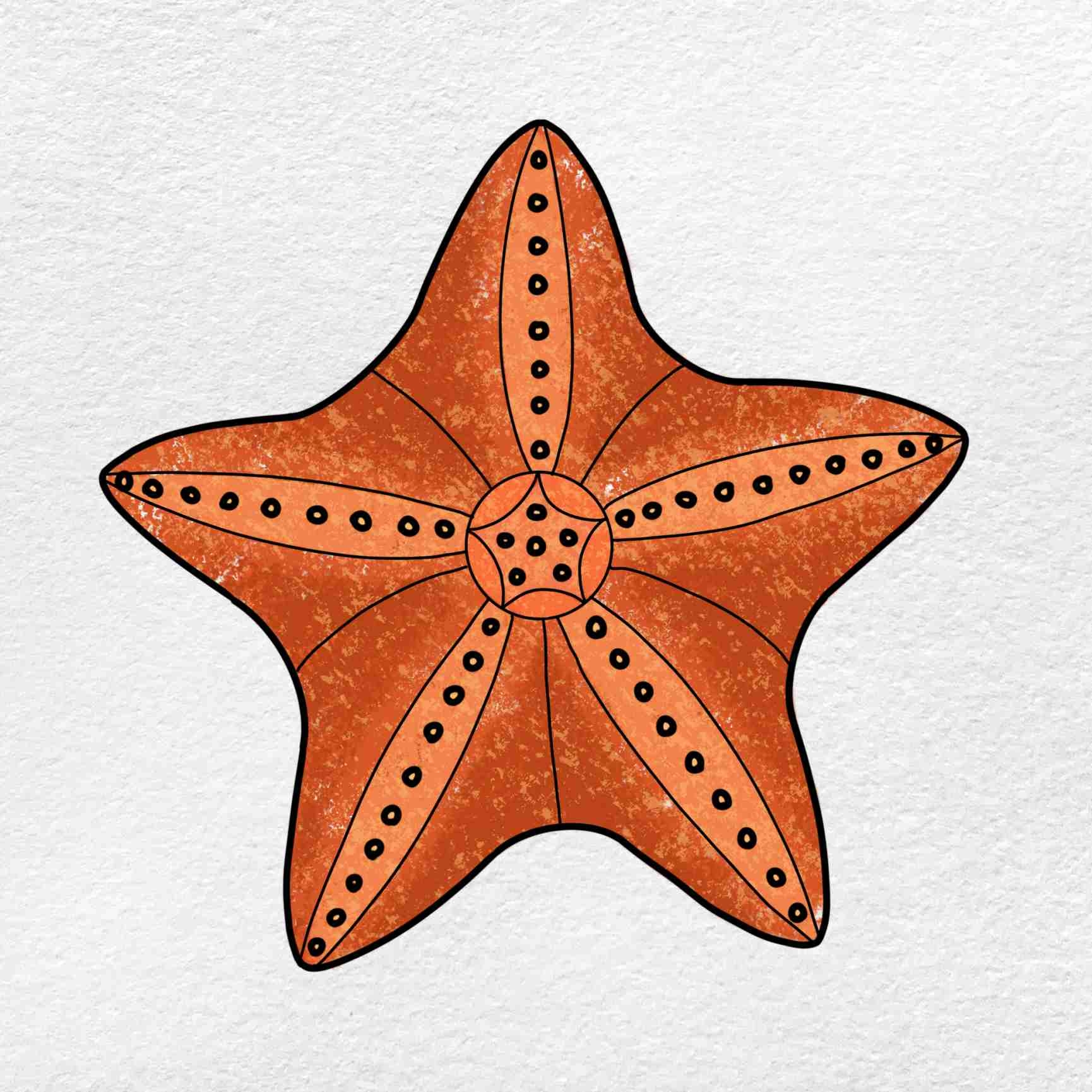 Next, add details to your drawing to make it more realistic. Starfish have a rough, textured surface with small bumps and ridges. Use shading techniques to create depth and dimension, emphasizing the natural contours of the starfish’s body.