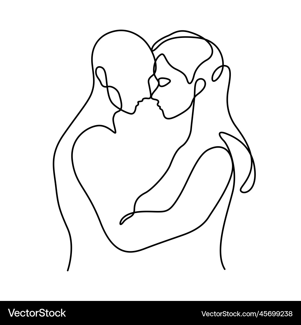 Romance Couple Line Art In One Drawing Royalty Free Vector