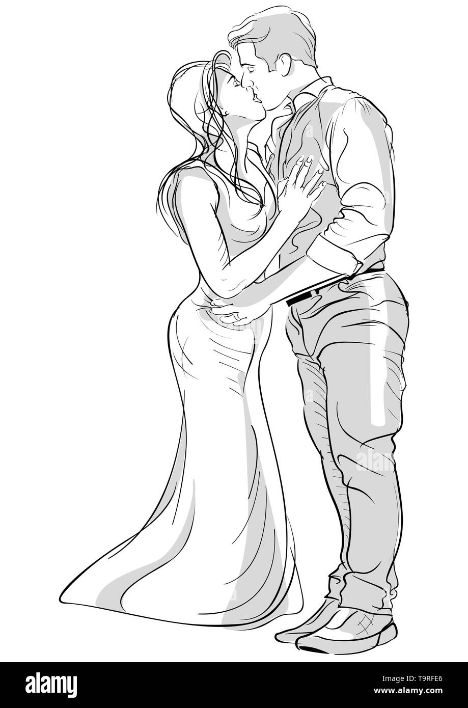 Romantic Kissing Couple Drawing Stock Vector Image U0026 Art Alamy