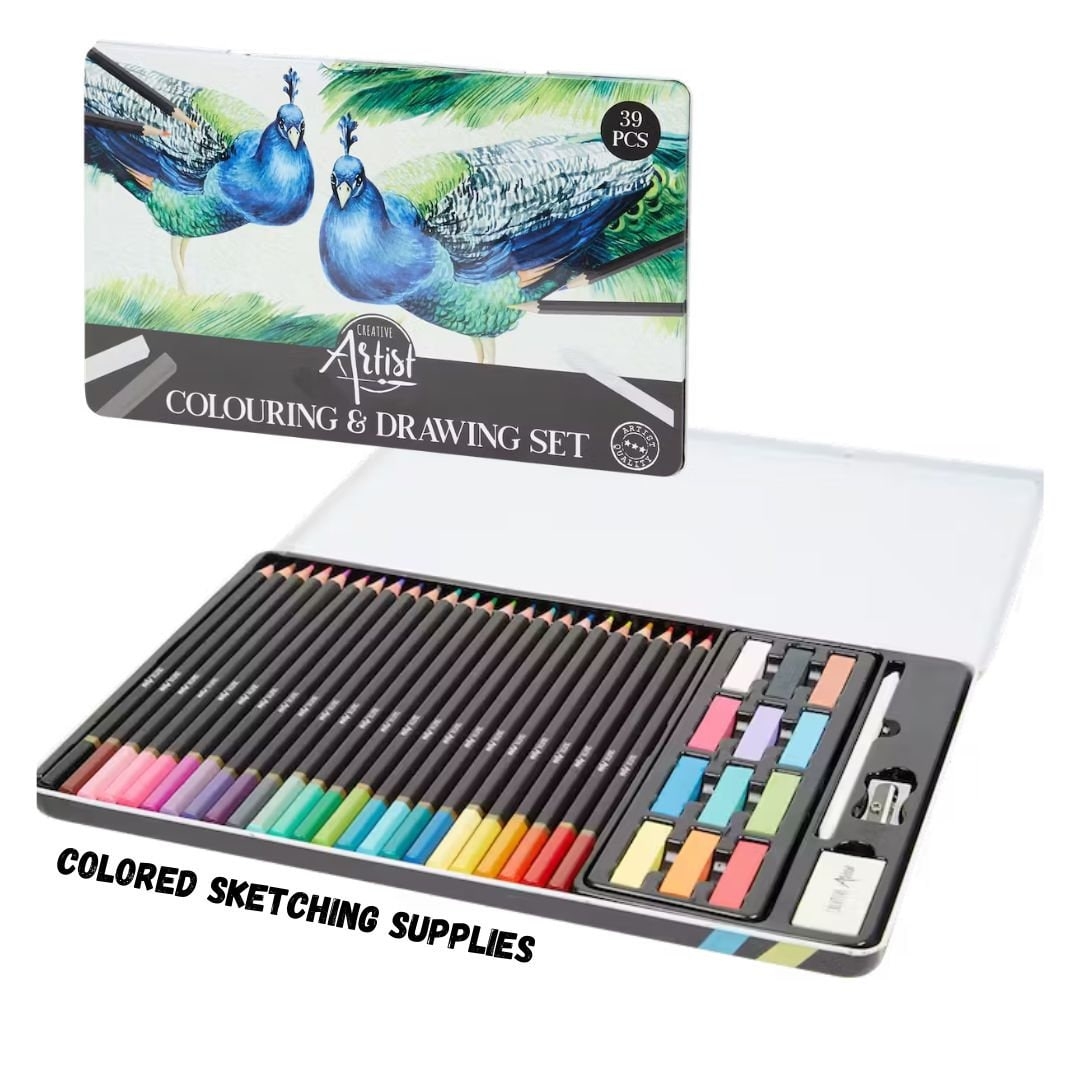 39 Pcs Coloring And Drawing Set With Storage Colour Pencils Soft