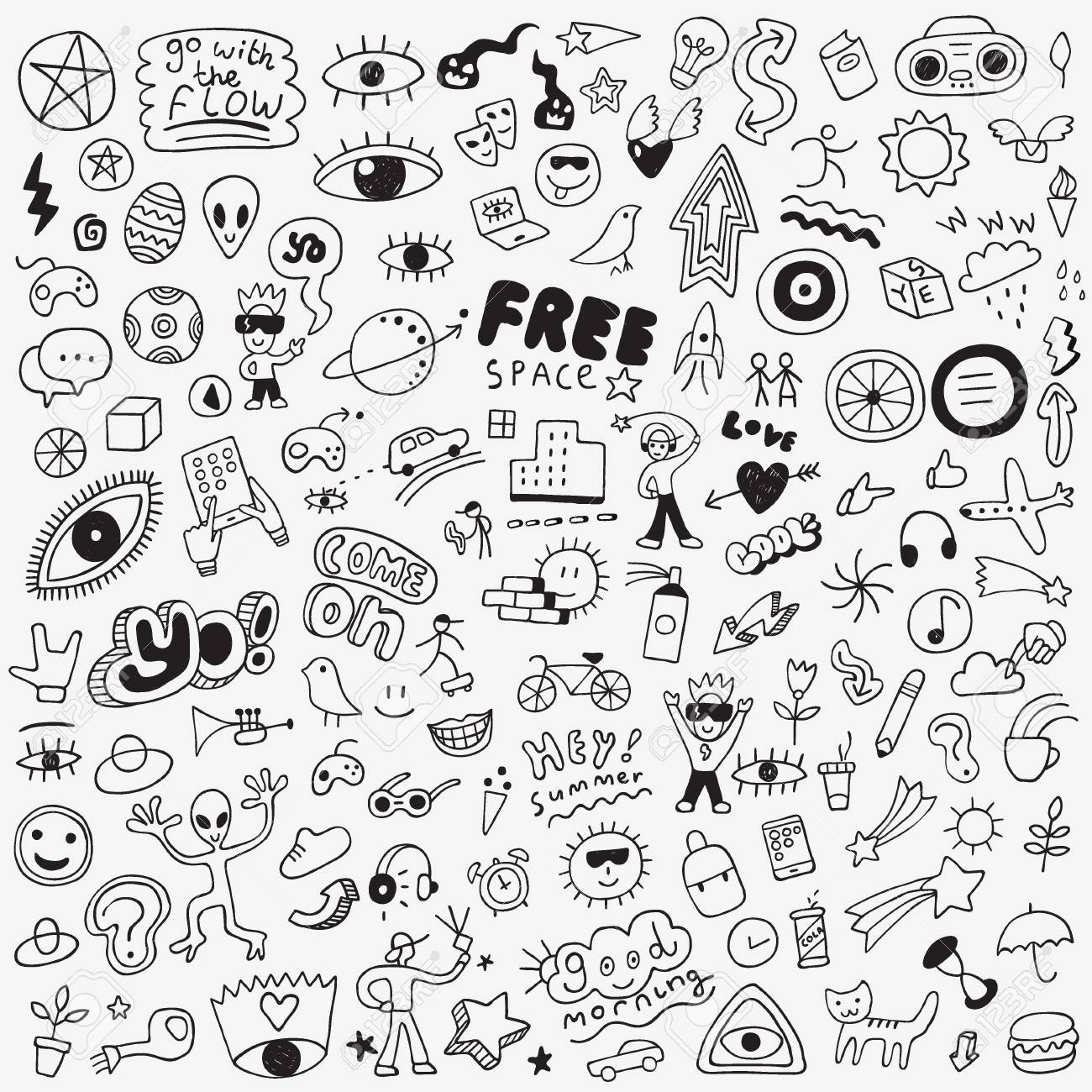 Summer Symbols Pencil Drawings Vector Design Elements Royalty Free SVG Cliparts Vectors And Stock Illustration Image 109987834