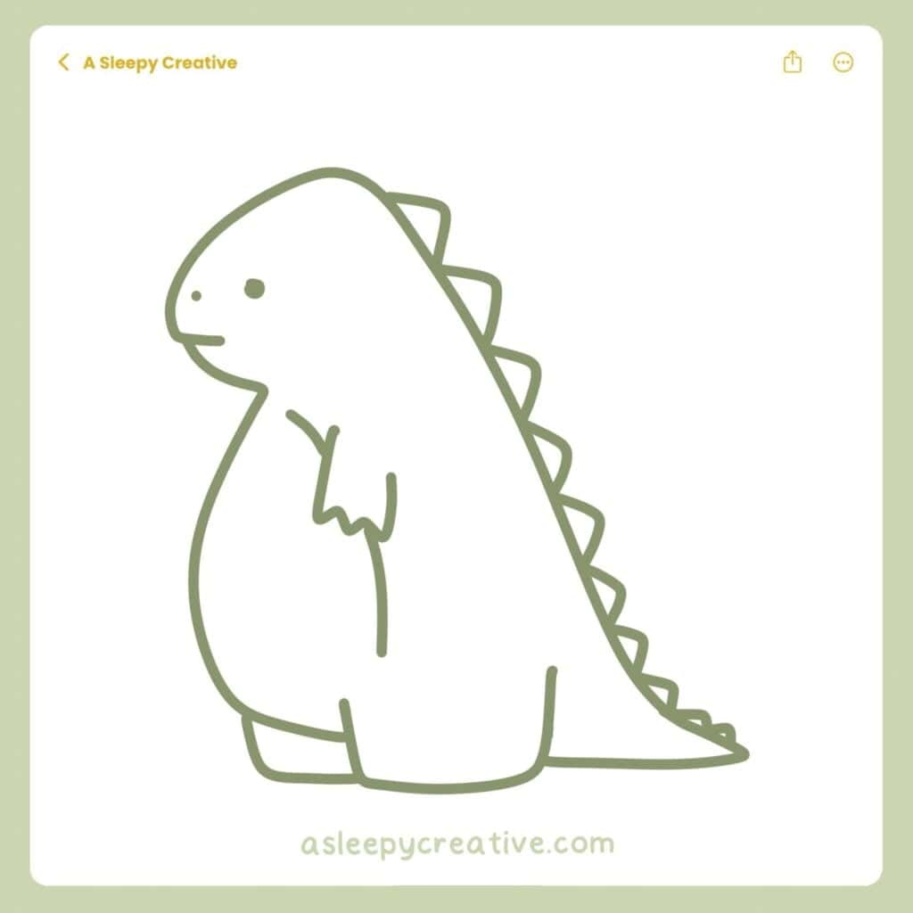1. Start by sketching the basic shape of the dinosaur. You can begin with an oval for the body and a smaller circle for the head. Add a line for the spine and legs to give your dinosaur a rough outline.