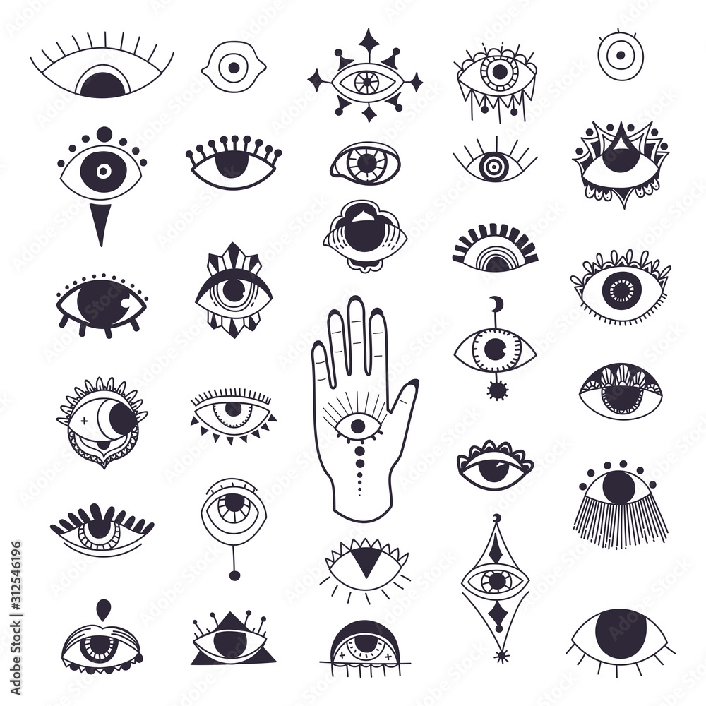 Evil Eyes Symbol Set Free Hand Drawing Style Esoteric Sign Alchemy Decorative Style Providence Sight Vector Illustration Stock Vector Adobe Stock