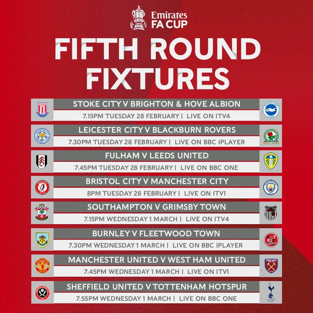 The FA Cup fifth round draw is always an exciting time for football fans. It marks the point in the competition where the remaining teams are just a few steps away from reaching the prestigious final at Wembley Stadium. The draw is eagerly anticipated as it determines the matchups that will take place in the next stage of the tournament.