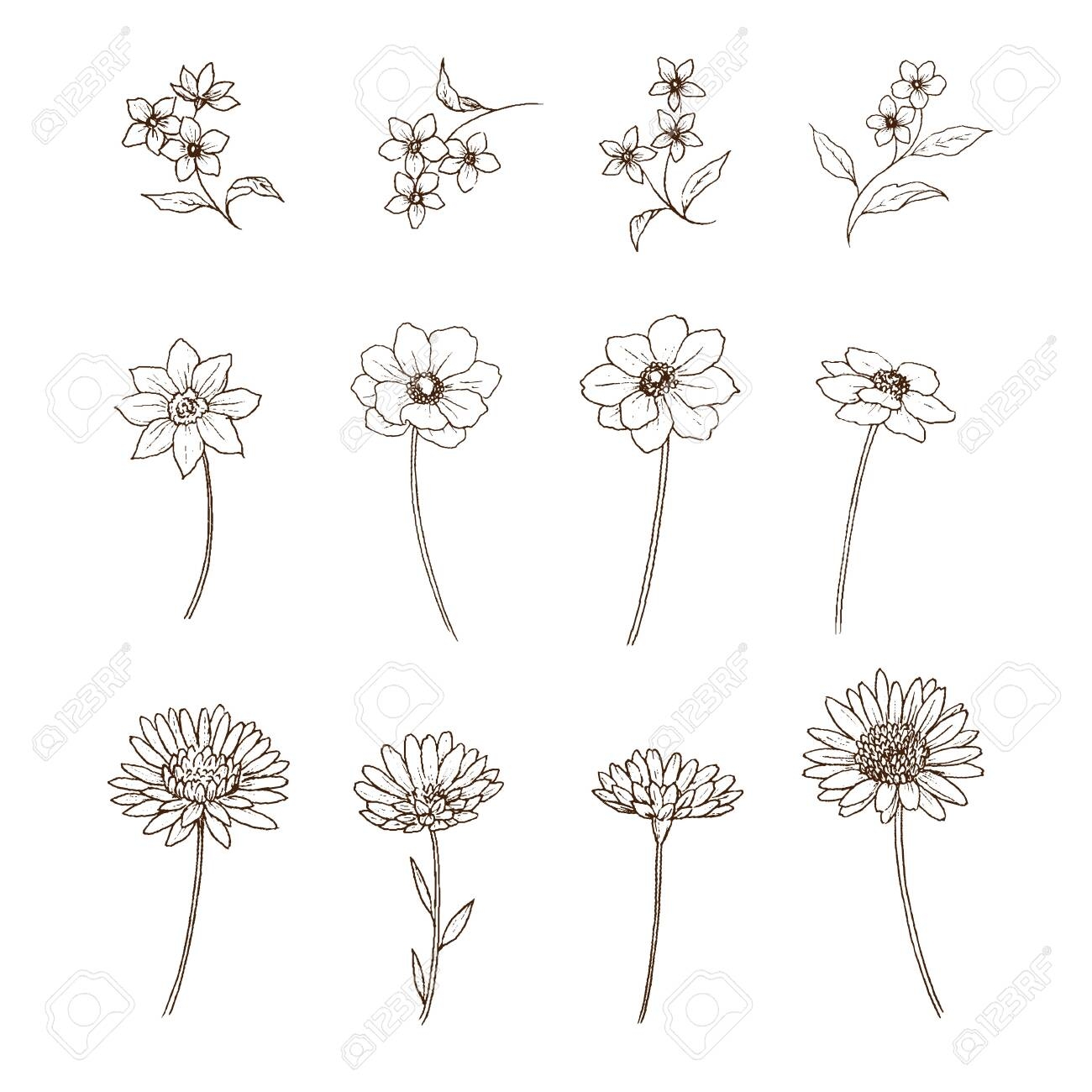 Flower Pen Drawing Set Royalty Free SVG Cliparts Vectors And Stock Illustration Image 133022338