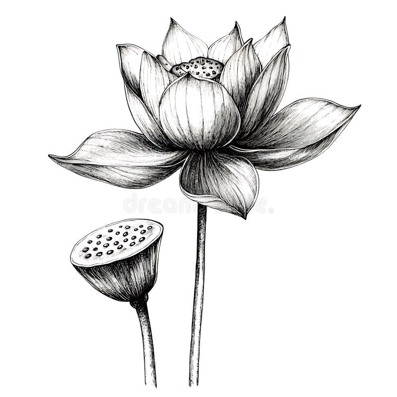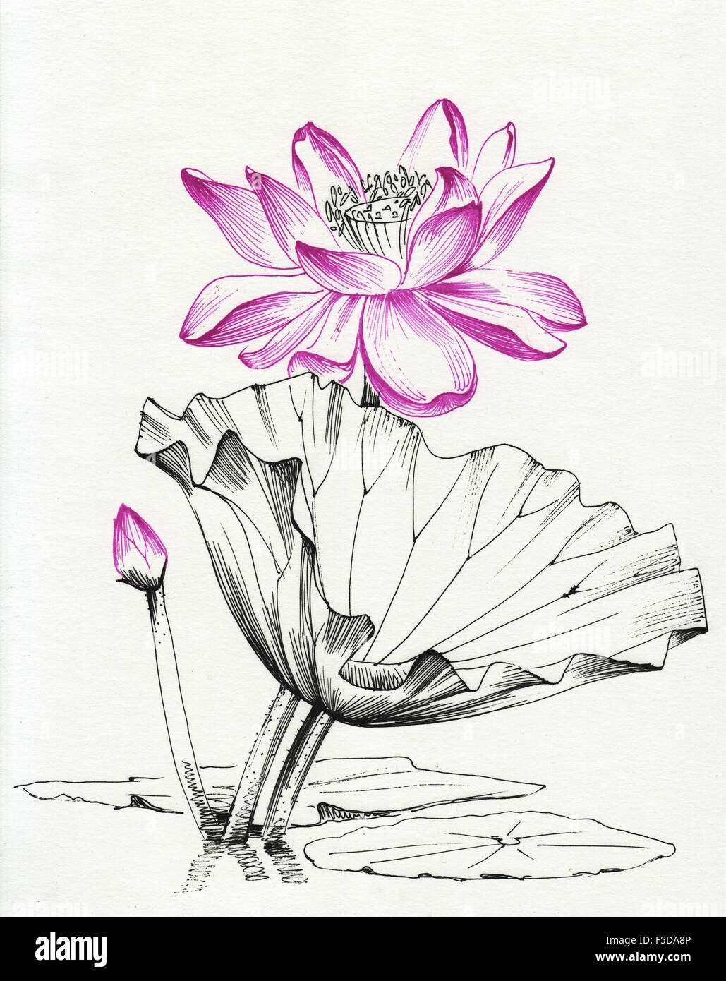 Lotus Flower Line Art Ink Pen Drawing Original Style Stock Photo Alamy