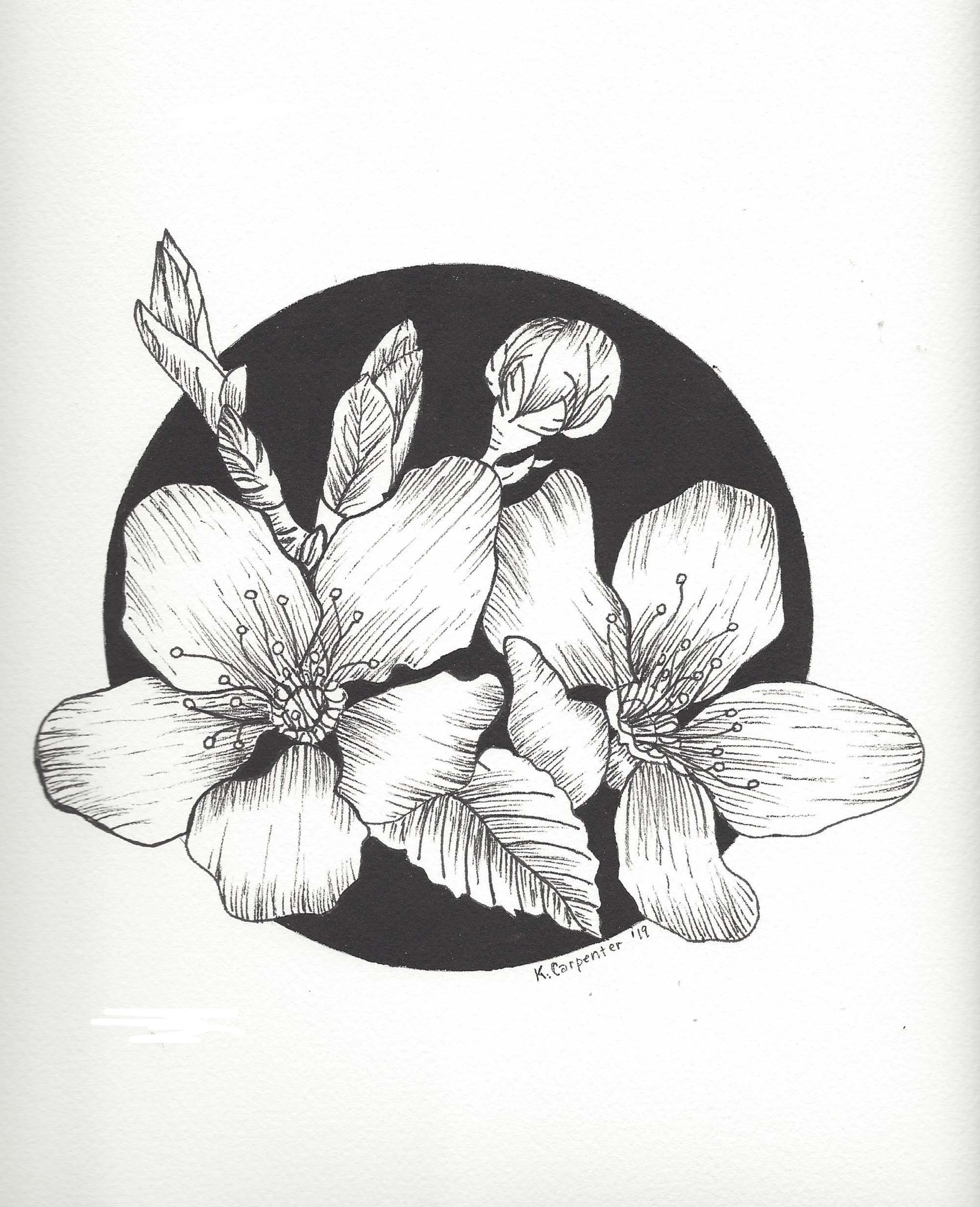 Original Pen U0026 Ink Drawing Of Flowers On Archival Watercolor Paper Botanical Flower