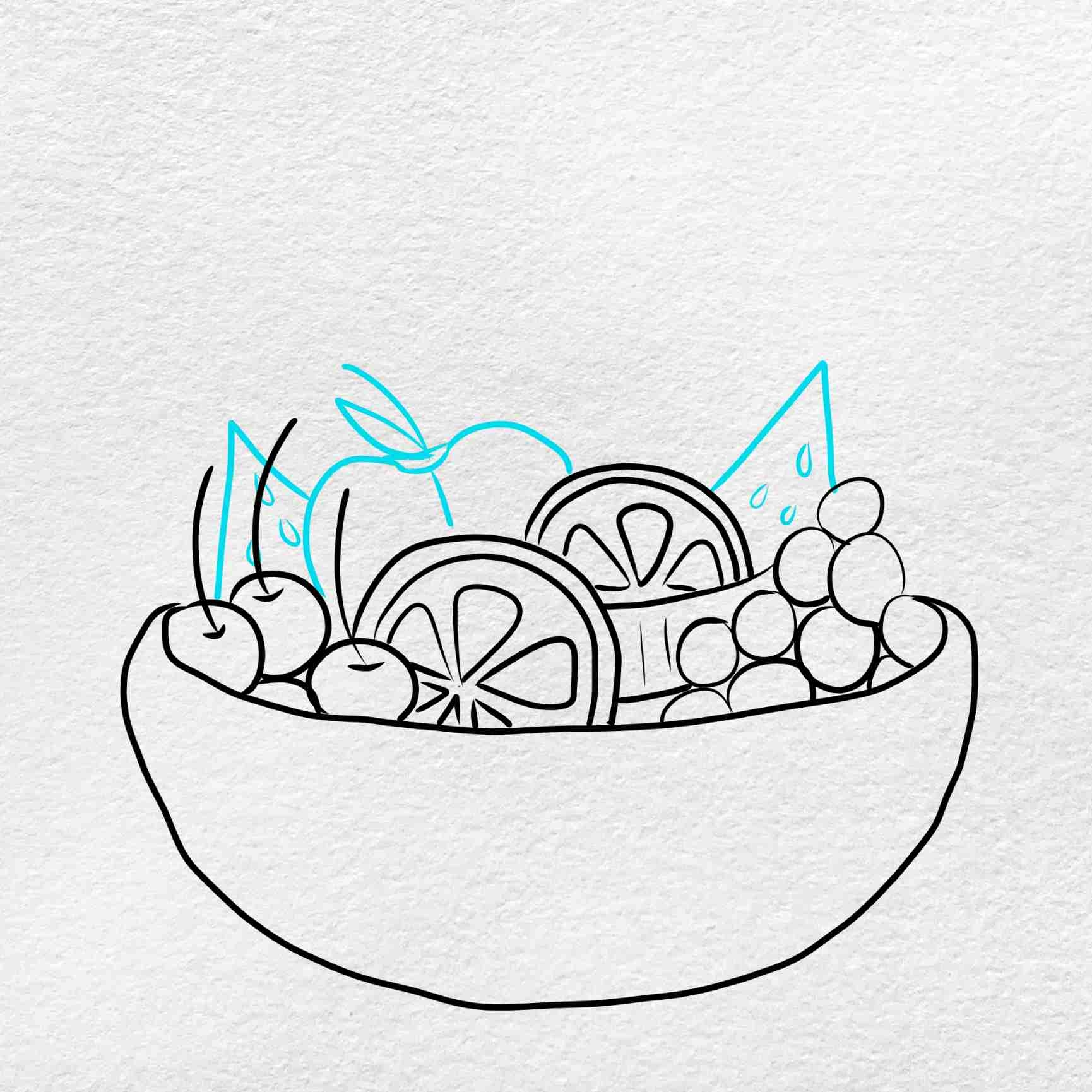 Start by sketching the outline of the bowl on your paper. Pay attention to the shape and size of the bowl, as well as any details such as patterns or textures. Once you have drawn the bowl, begin adding the fruits one by one. Focus on capturing the unique shapes and textures of each fruit, paying attention to details such as stems, seeds, and peel.