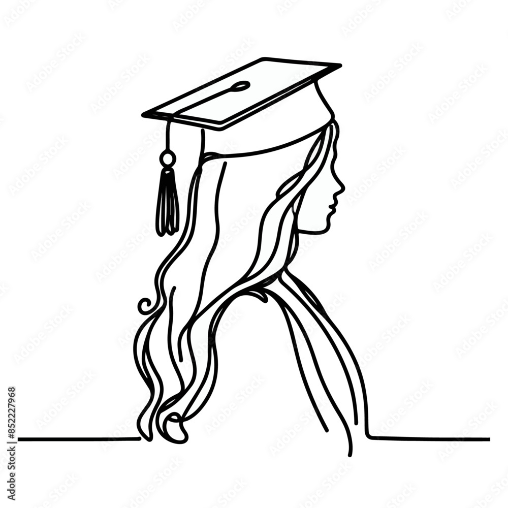 Line Art Of Graduated Girl Continuous Line Drawing Of Graduated