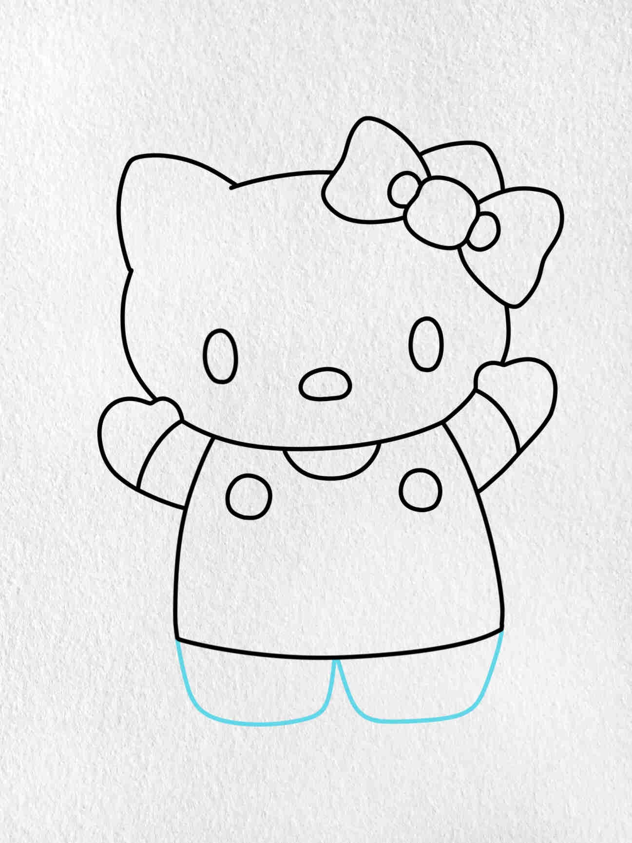 5. Finally, add a cute bow on top of Hello Kitty’s head to complete the drawing. You can also add some details like her signature pink bow or a pattern on her dress.