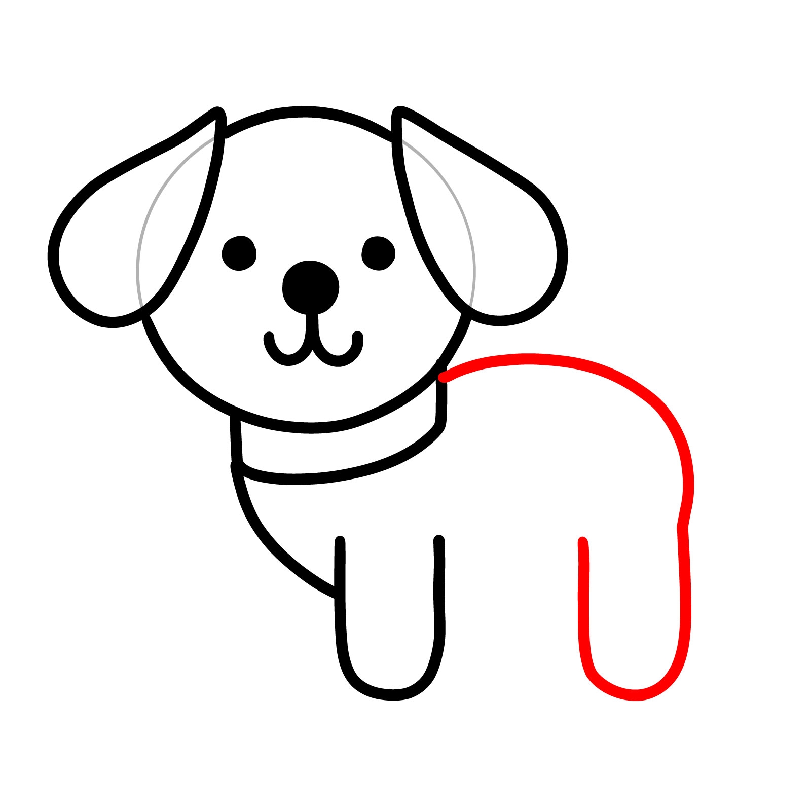 1. Start by drawing a large oval shape for the dog’s head, and add two smaller circles for the ears. Next, draw a smaller oval for the body and connect it to the head with a curved line for the neck.