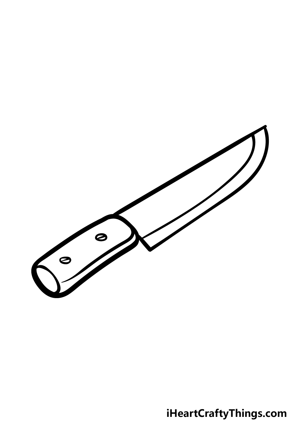 2. Add more details to the blade and handle. Include features such as the cutting edge, the point of the blade, and any decorative elements that the knife may have. Take your time to ensure that the details are accurate and well-defined.