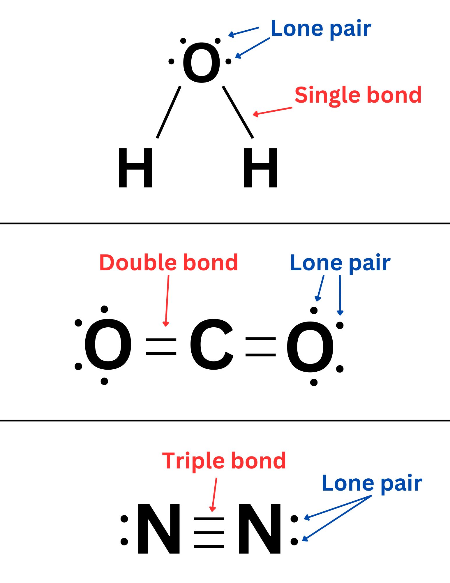 4. If there are still extra electrons after satisfying the octet rule for each atom, place them as lone pairs on the outer atoms. However, if the central atom does not have an octet, you may need to form double or triple bonds to fulfill the octet rule.