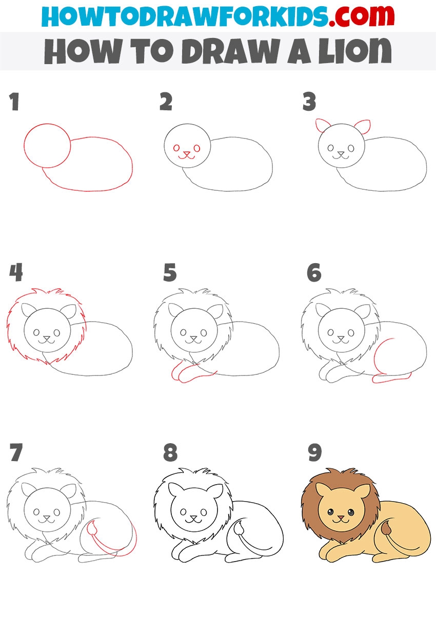 How To Draw A Lion Easy Drawing Tutorial For Kids