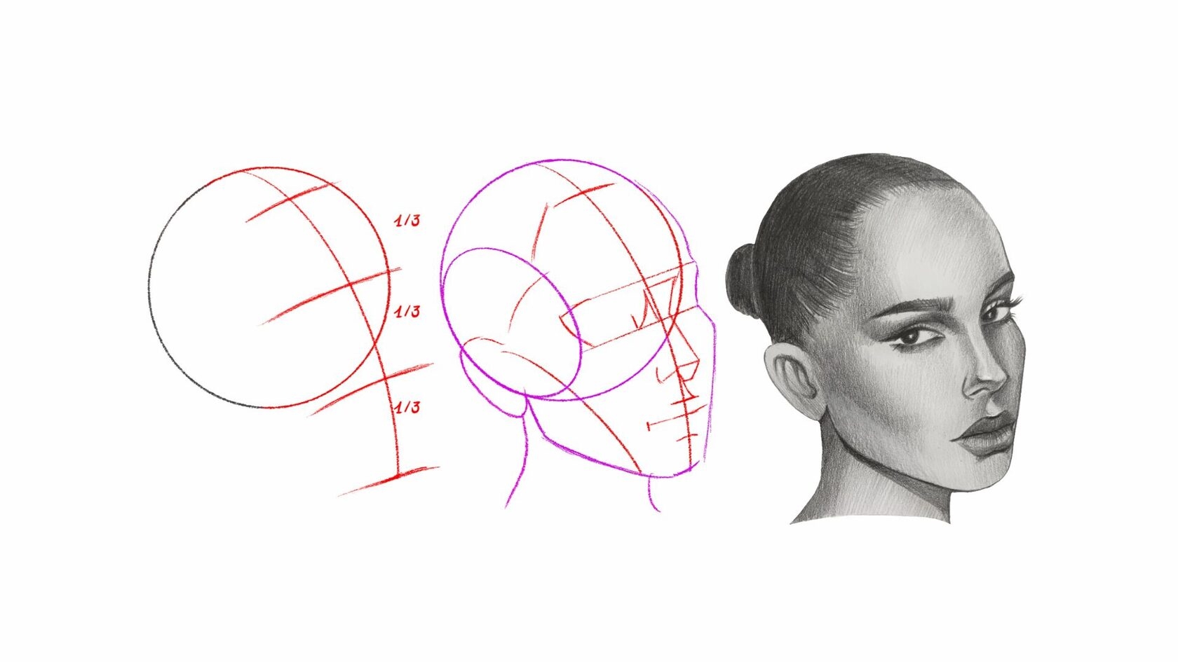 Start by sketching the basic shape of the head, which can be an oval or circle depending on the angle of the face. Then, add guidelines to help you place the features correctly. The eyes should be in the middle of the head, with the nose below and the mouth slightly above the chin.