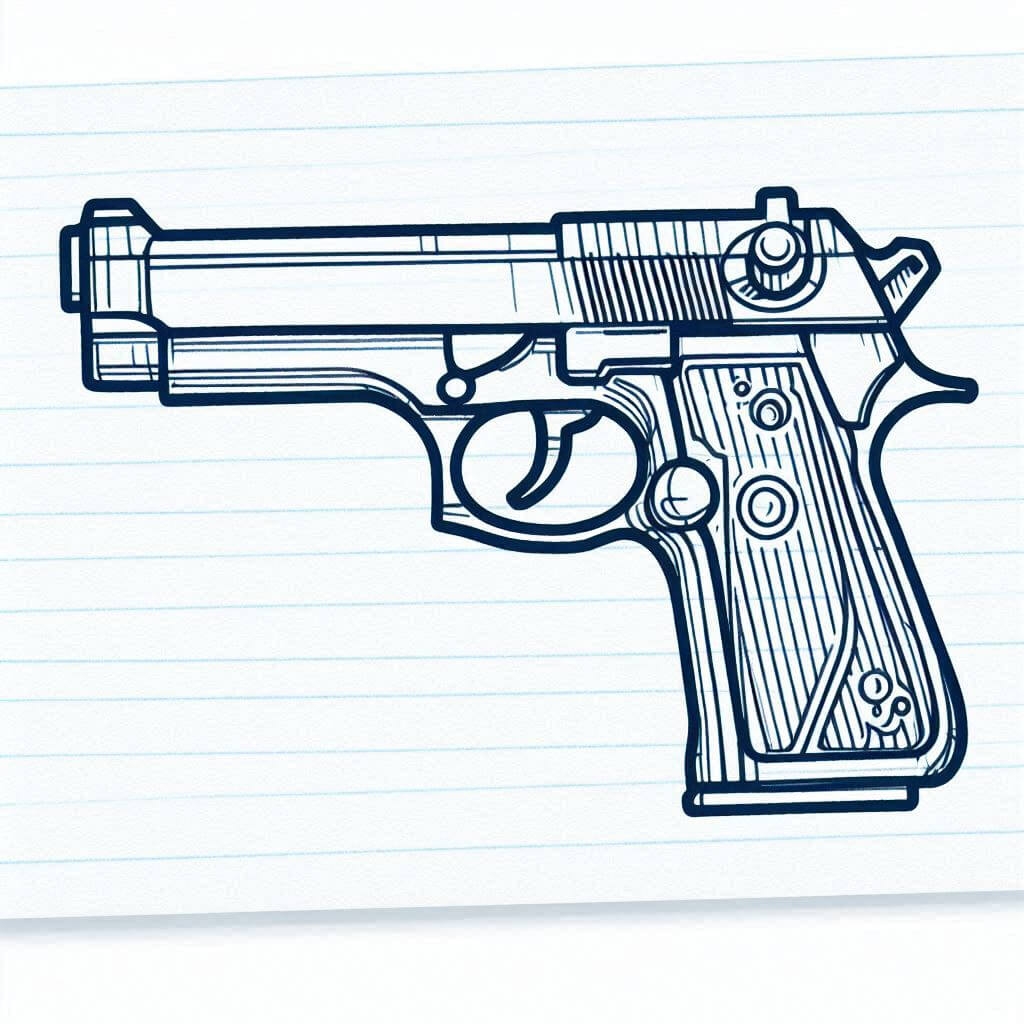 1. Start by sketching the basic outline of the gun, including the barrel, trigger guard, and grip. Pay attention to the proportions and angles to ensure that your drawing looks realistic.