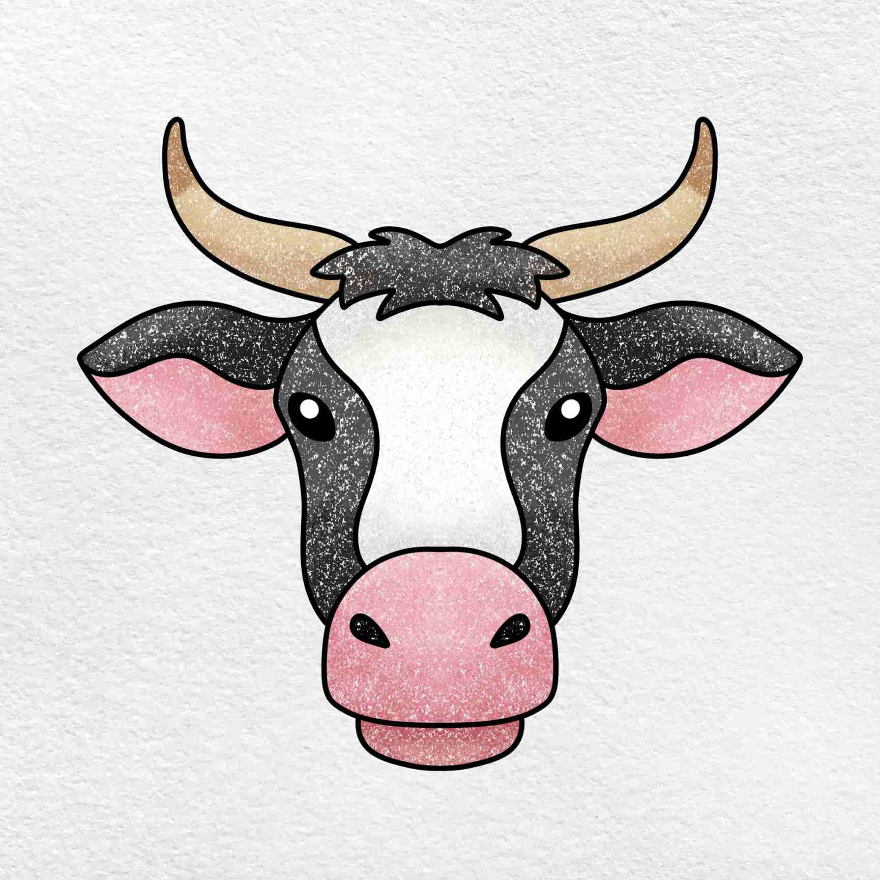 Once you’re happy with the details, go over your sketch with darker lines to define the cow’s features. Erase any stray lines or mistakes as needed, and add shading to give your cow drawing dimension. Use a blending tool or your finger to smooth out the shading and create a more realistic look.