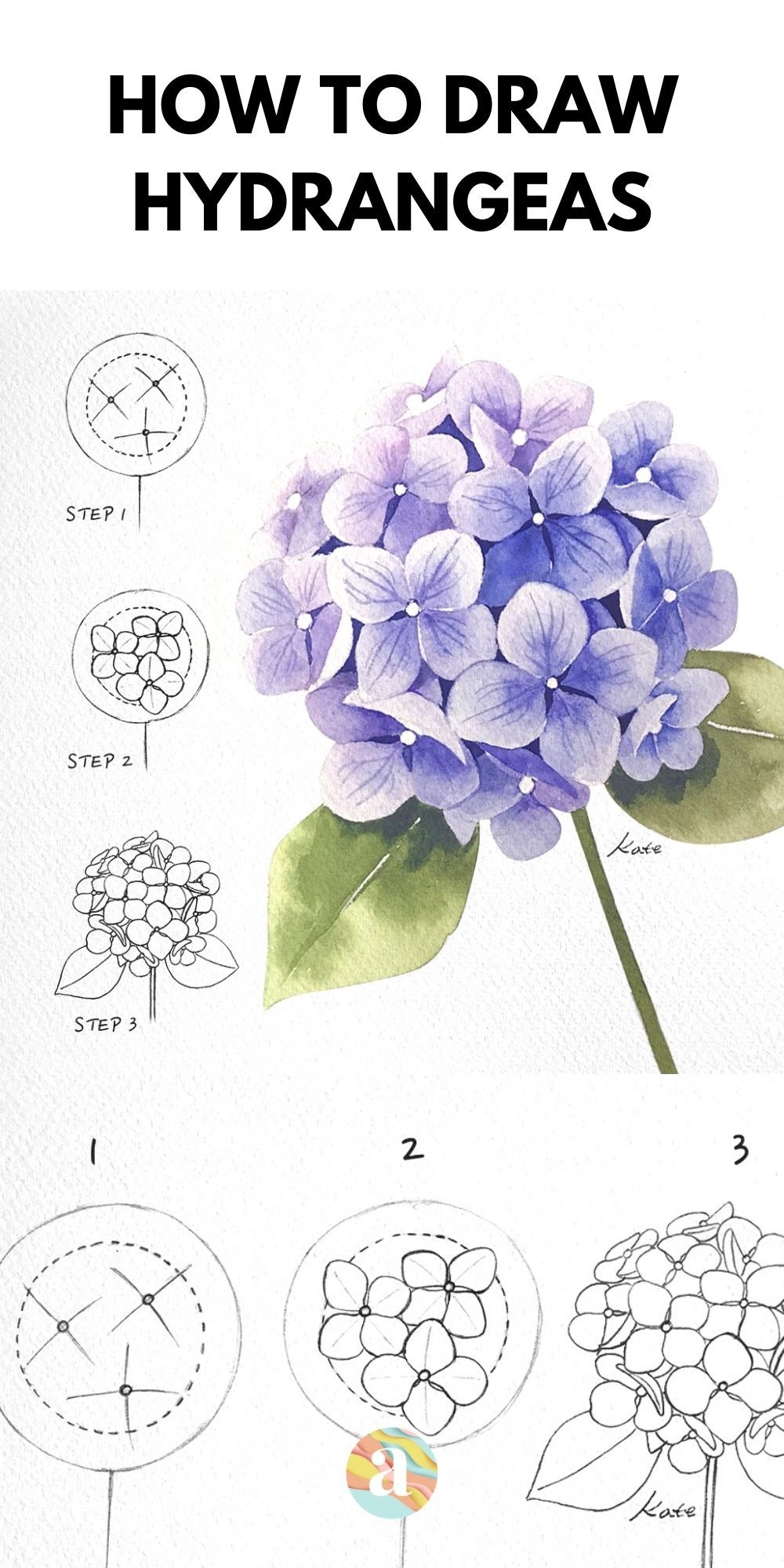 How To Draw A Hydrangea Flower Really Easy Drawing Tutorial