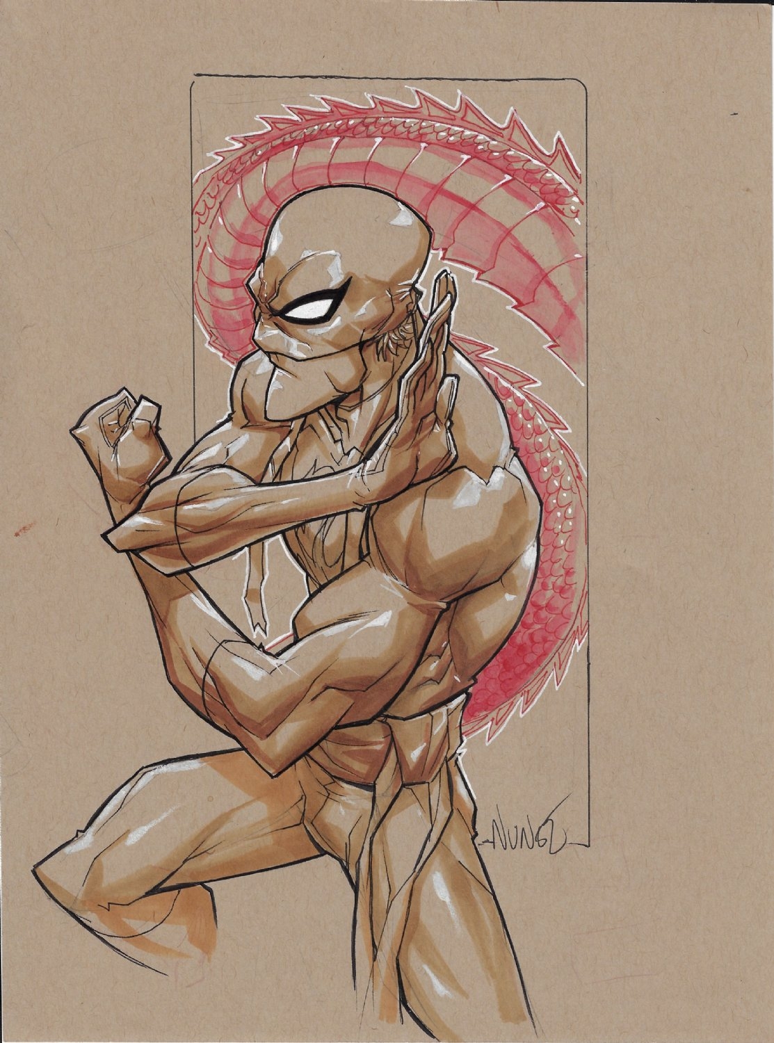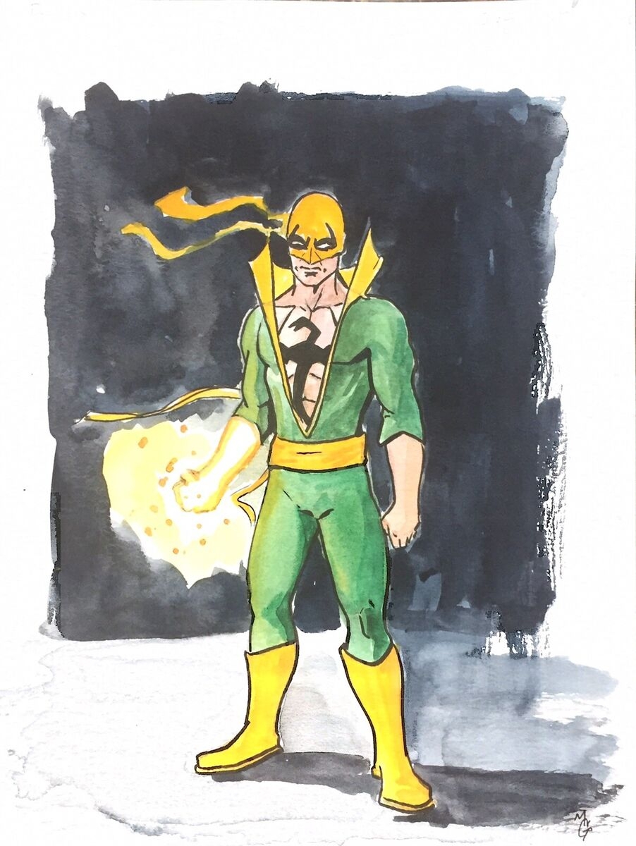 ORIGINAL Iron Fist Hand Drawn Sketch Drawing By Matt Goodall Water Colored