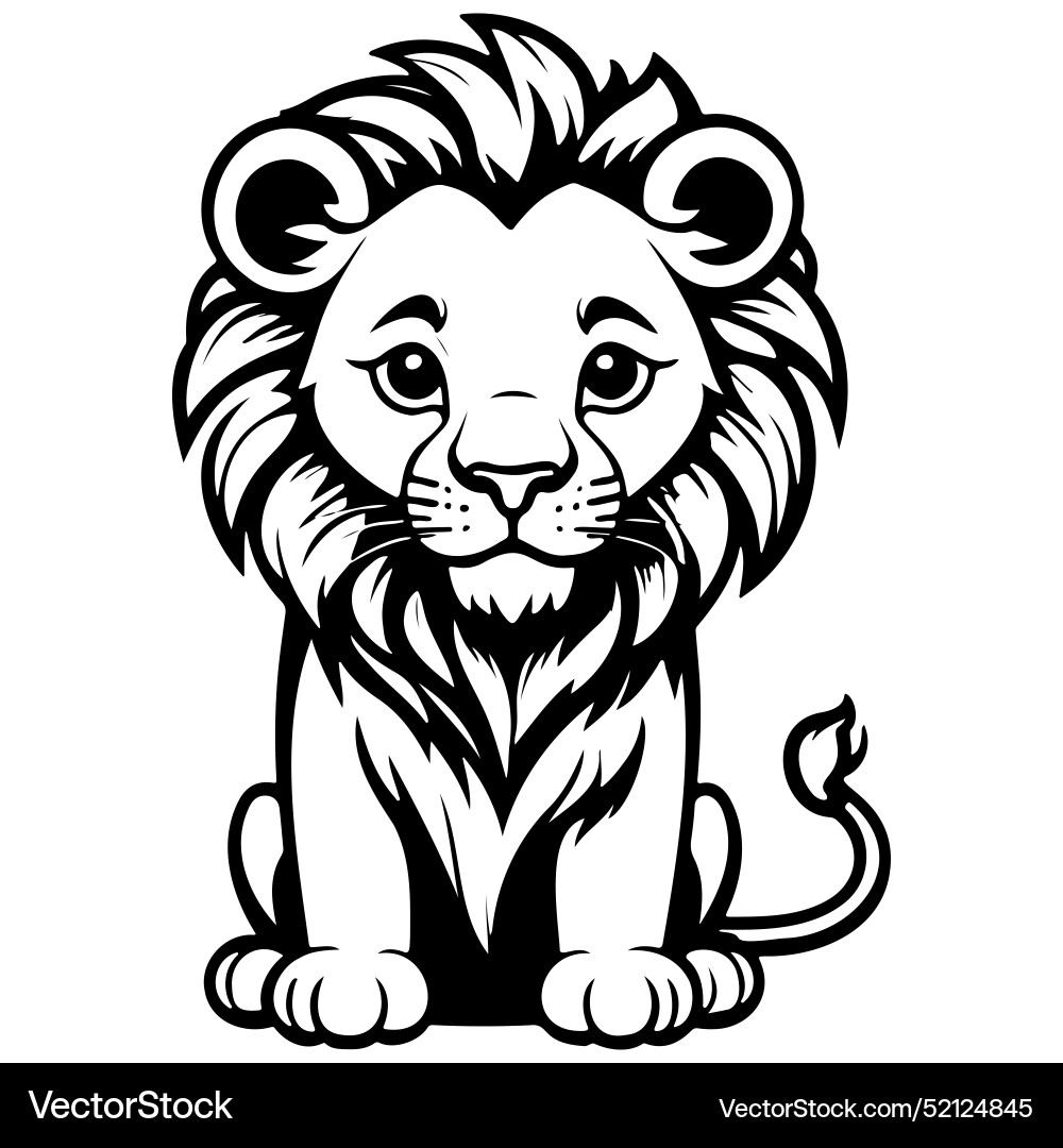 Cartoon Lion Drawing Realistic Outline Line Vector Image