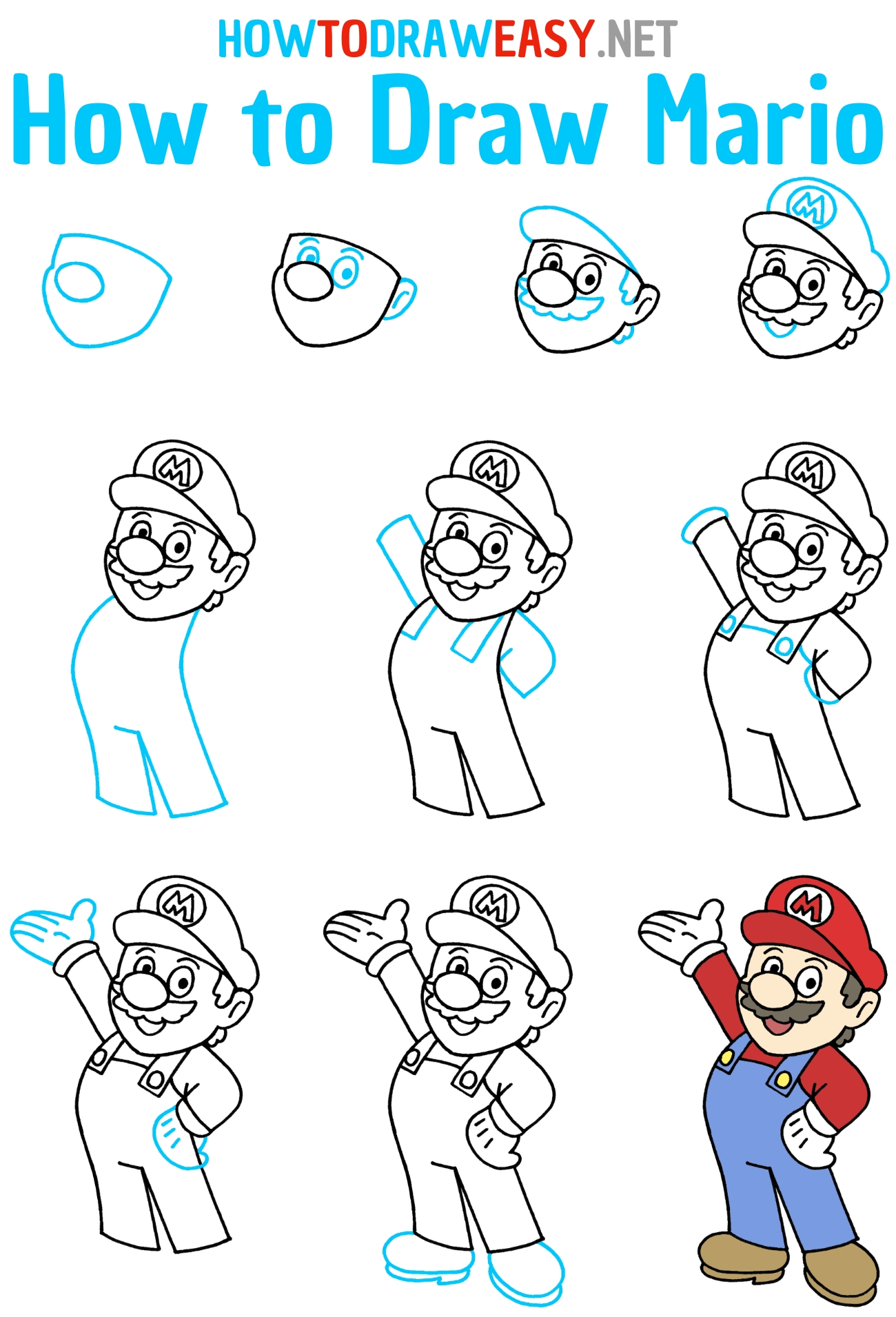 Easy Mario Drawing How To Draw Mario Step By Step For Kids
