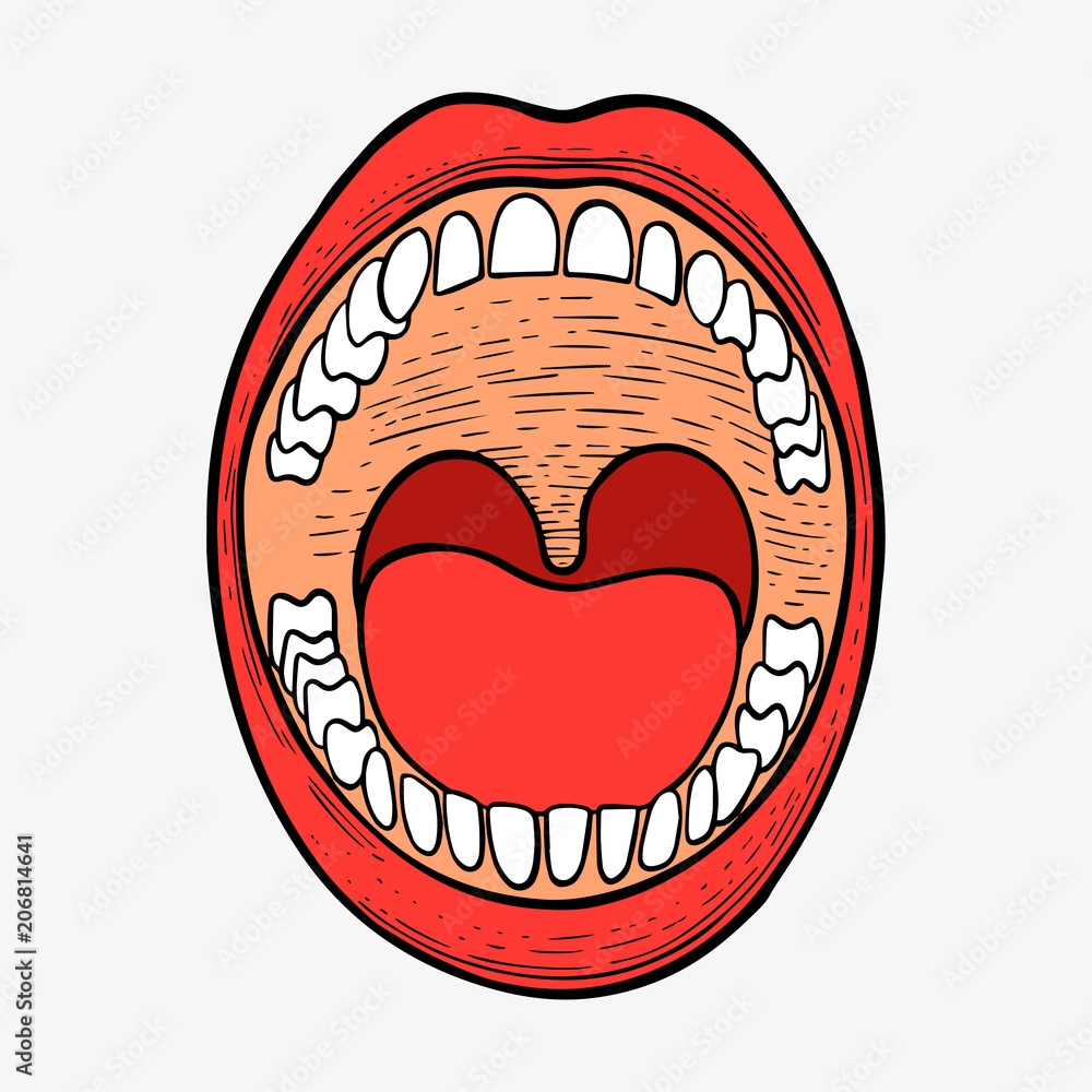 Wide Open Mouth Graphic Illustration Of A Mouth Wide Open Showing Teeth And Tongue Stock Illustration Illustration Of Anatomy White 354497836
