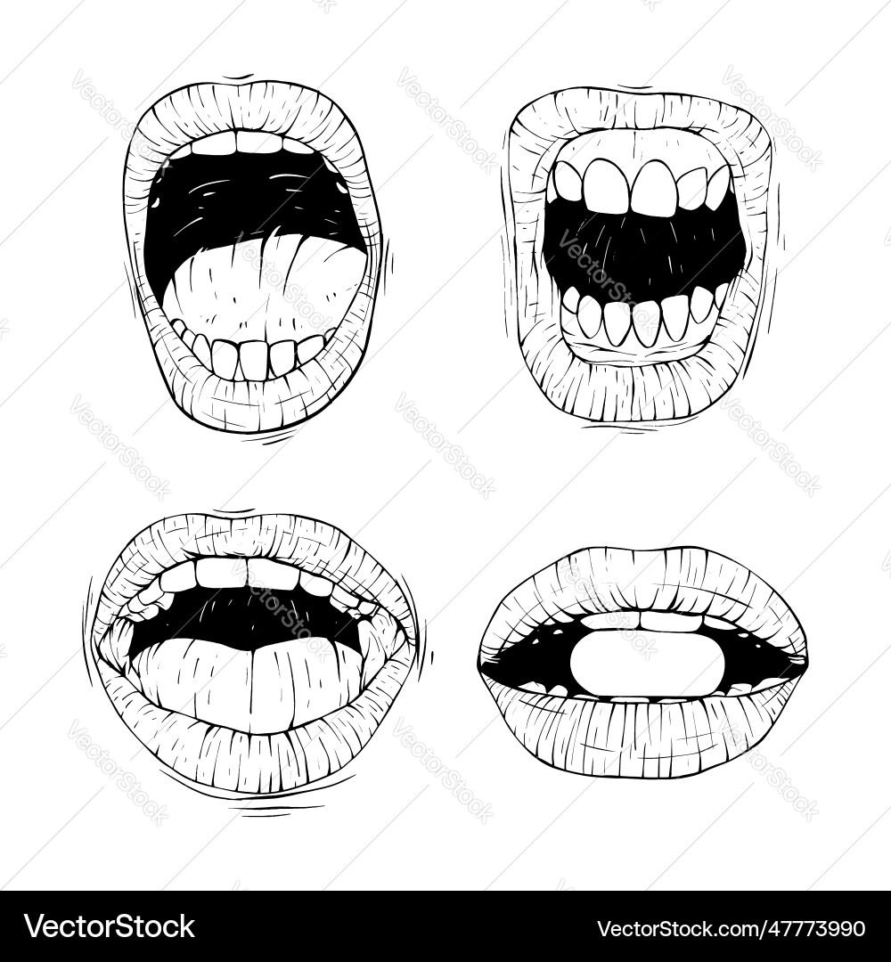 Set Open Mouth Collection Sketch Line Art Vector Image