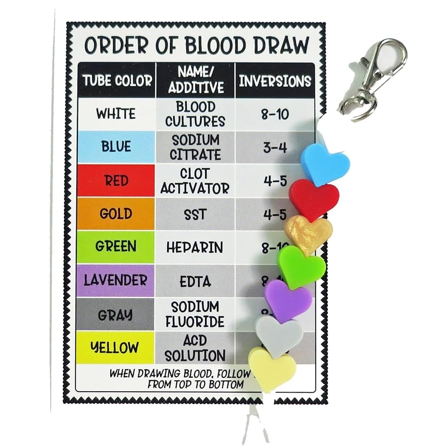 Order Of Blood Draw Beads With Reference Card Essential Resource Tool For Phlebotomist Badge Reel Accessory For Phlebotomist Nurse RN Student