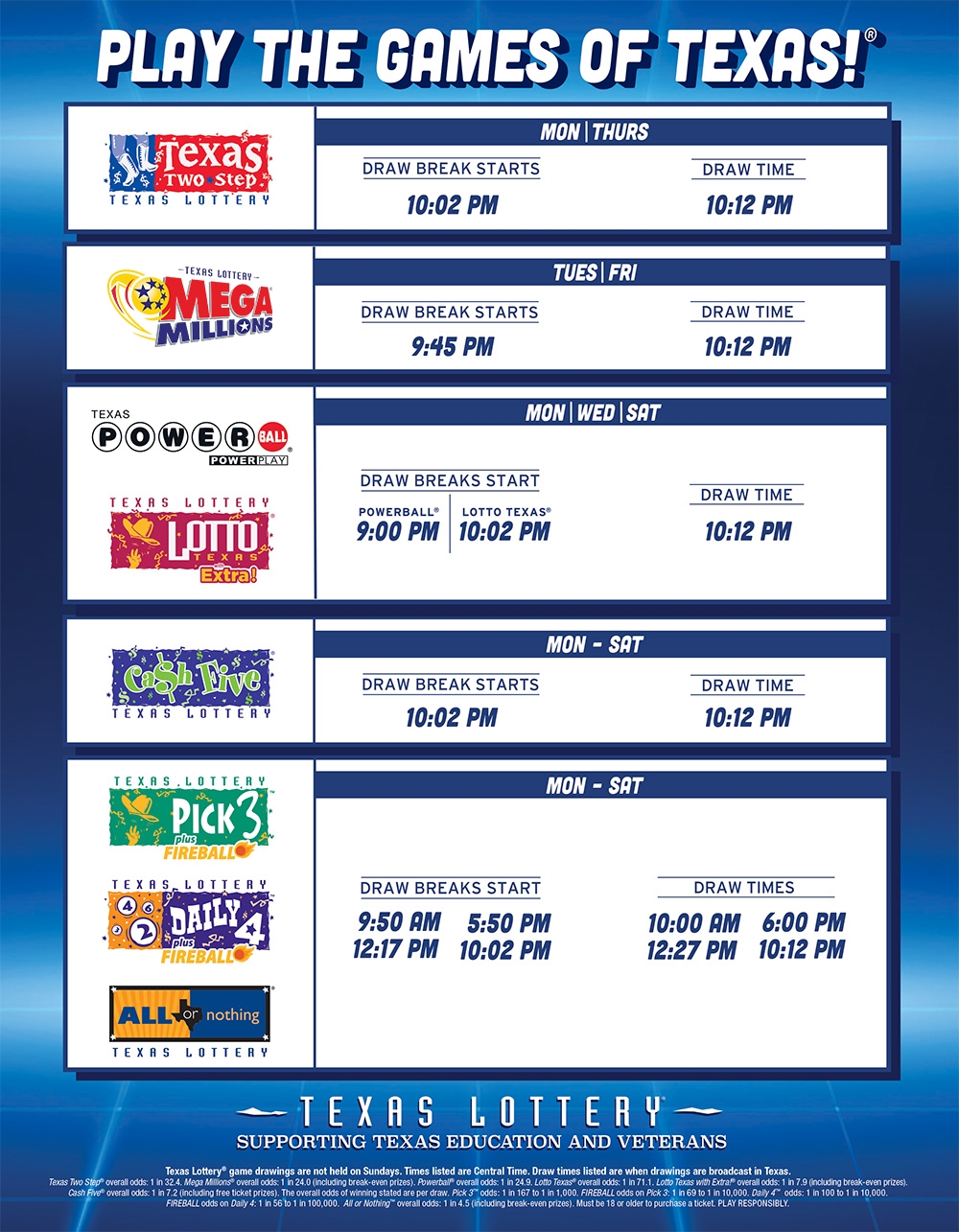 Texas Lottery Drawing Schedule