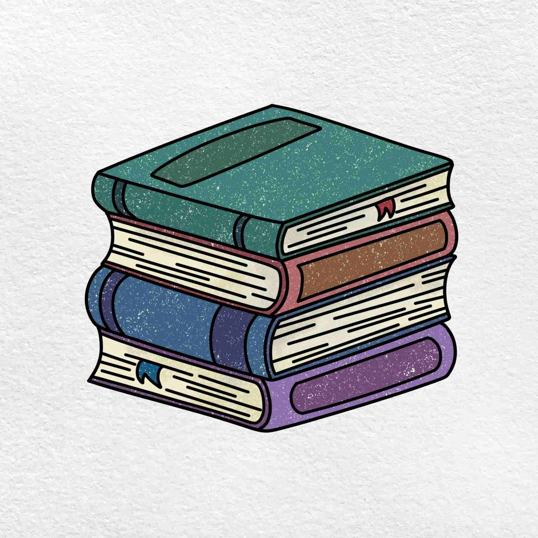 stack of books drawing