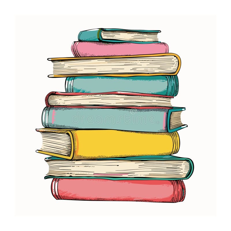 Stack Colorful Books Illustration Handdrawn Sketch Style