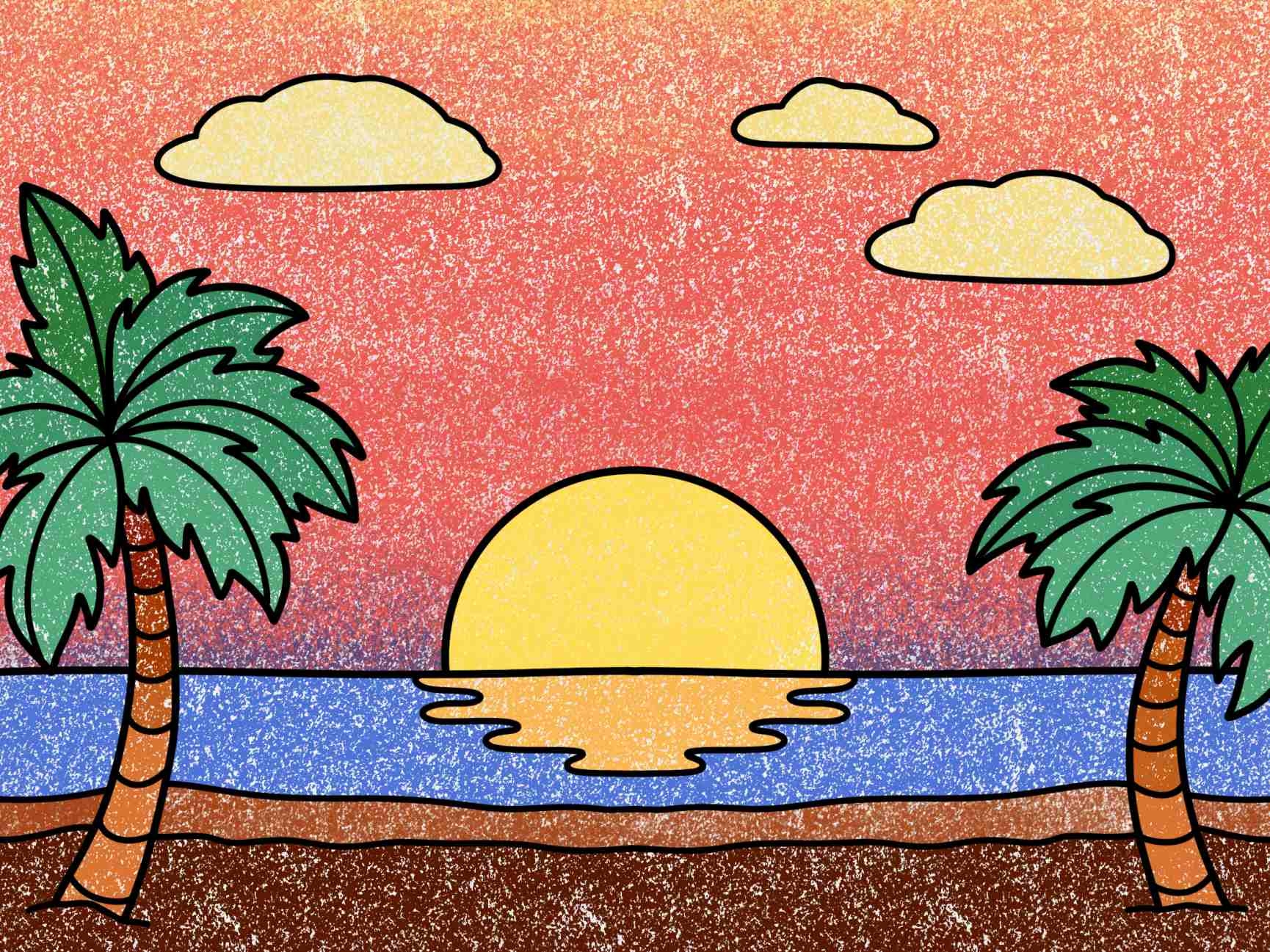 Beach Sunset Drawing easy HelloArtsy