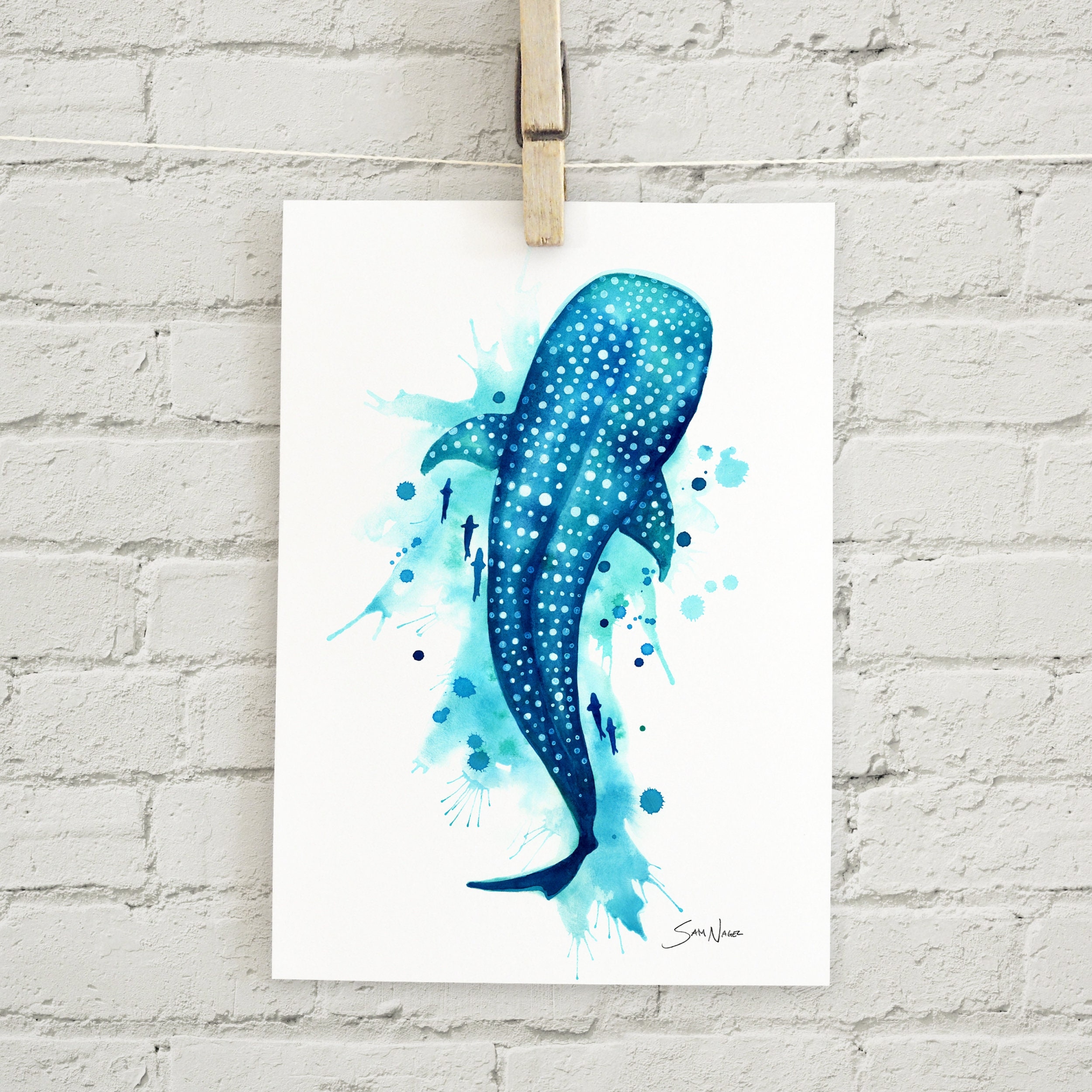Gentle Giant Spotted Whale Shark Art Print Blue Watercolor Marine Ocean Animal Etsy